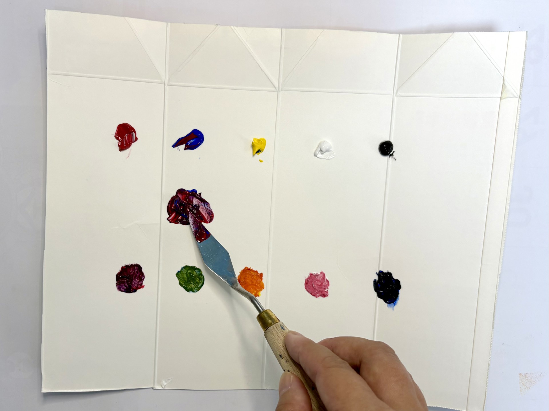(3)多めの絵の具を混ぜたい場合は、ペインティングナイフが便利です。