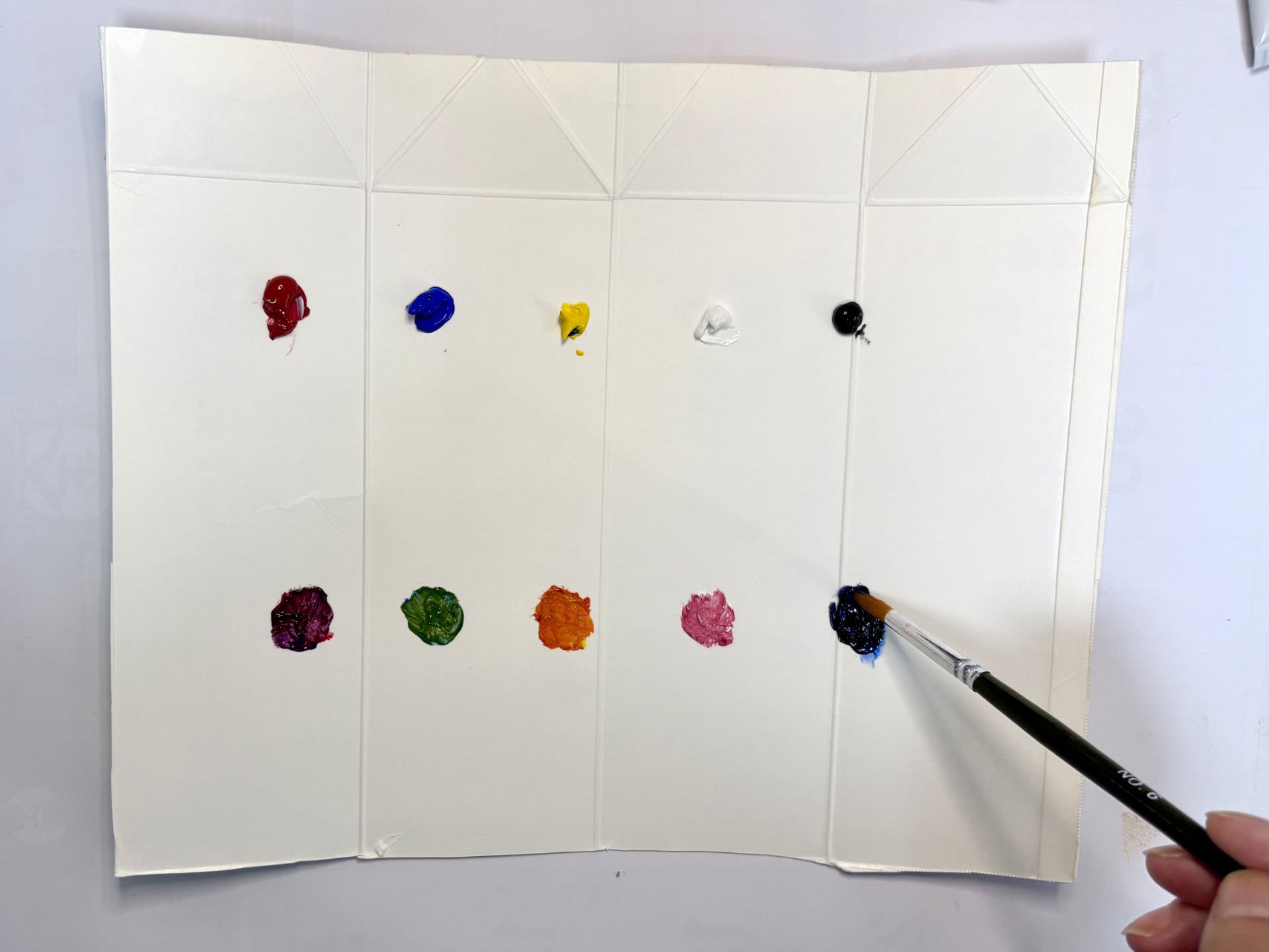 (1)まずはパレットに基本的な5色(赤、青、黄、白、黒)を出してみましょう。