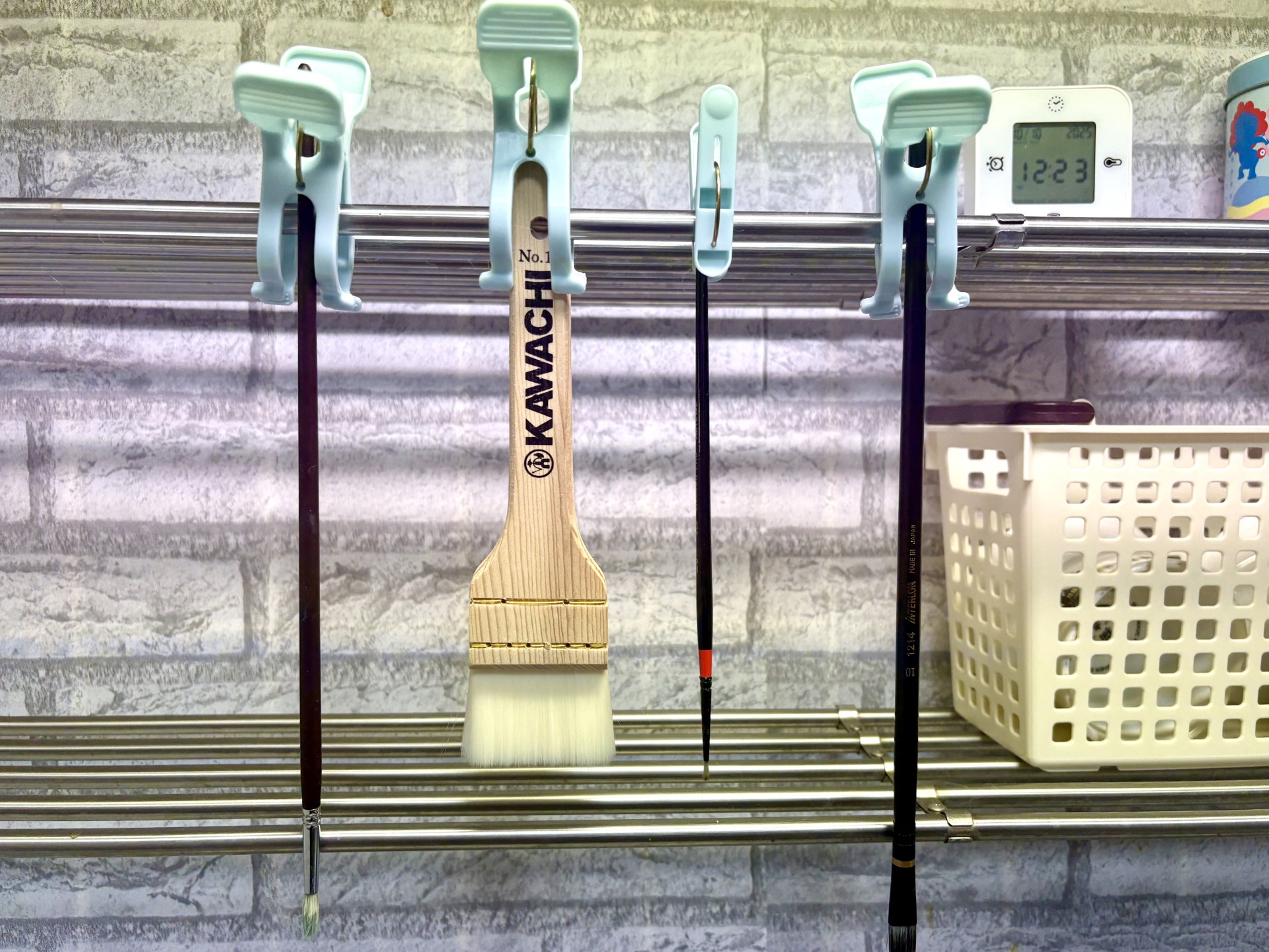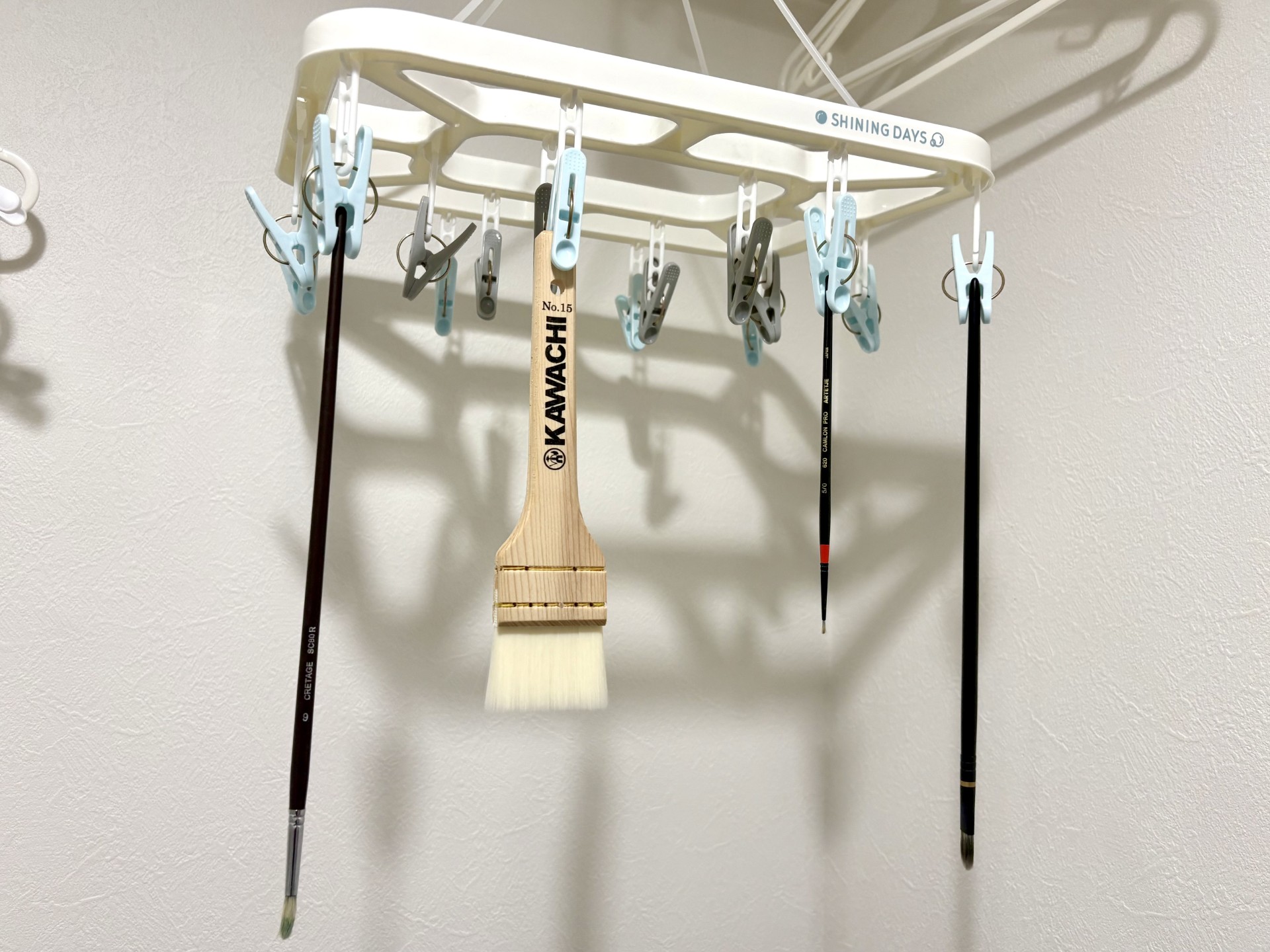 筆を下に向けて乾かす方法は、このあと紹介します!