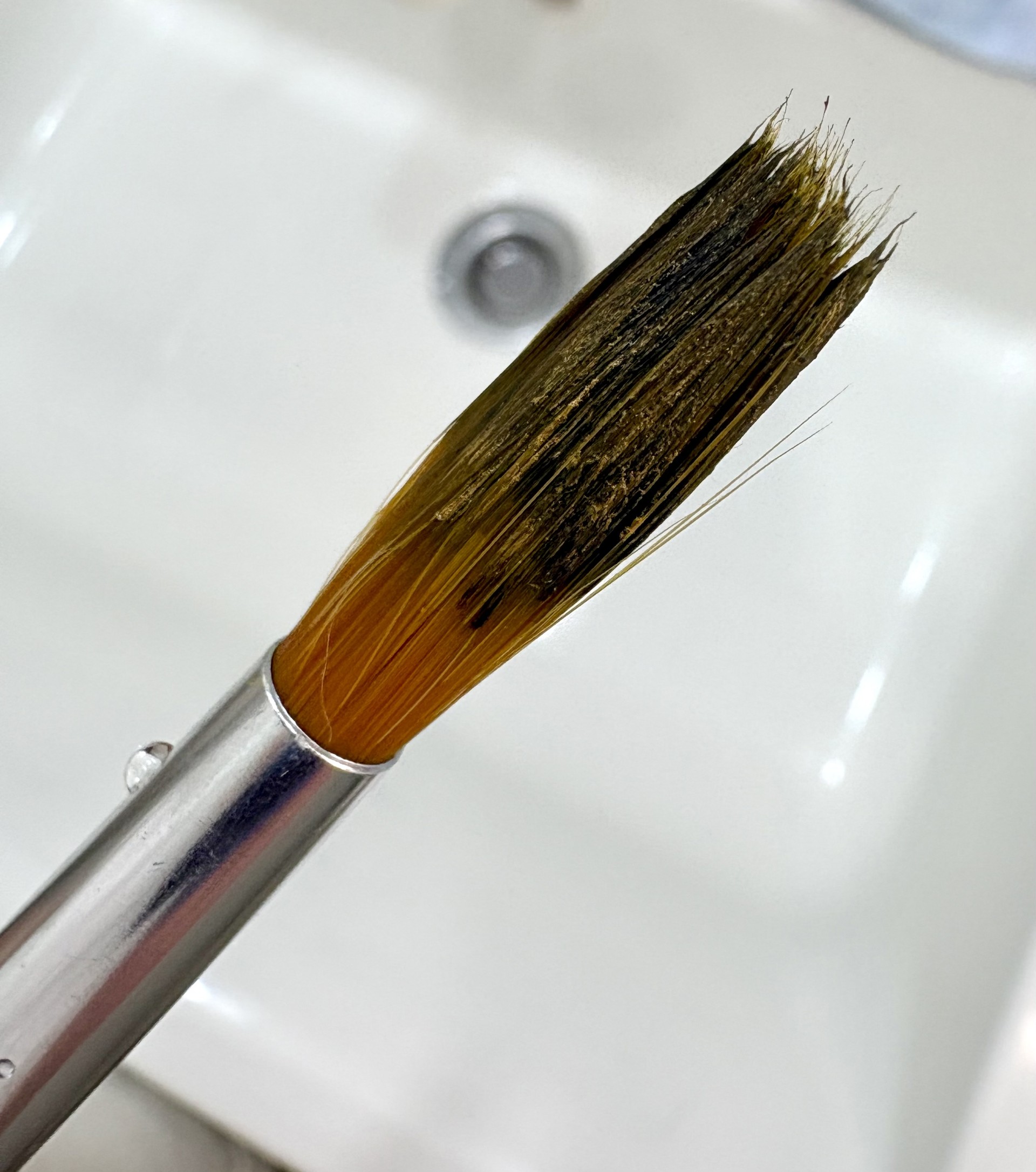 ◼️こちらはアクリル絵の具がカチカチに固まってしまった筆です。