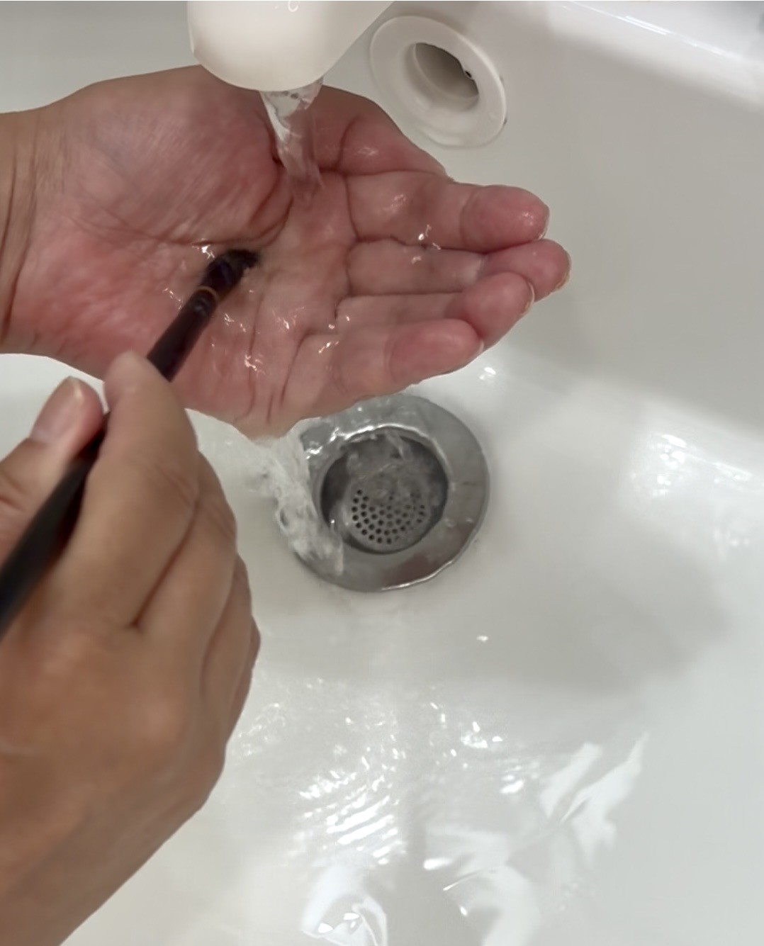 使い終わったらすぐに、水かぬるま湯で筆をゆすぐのが鉄則!