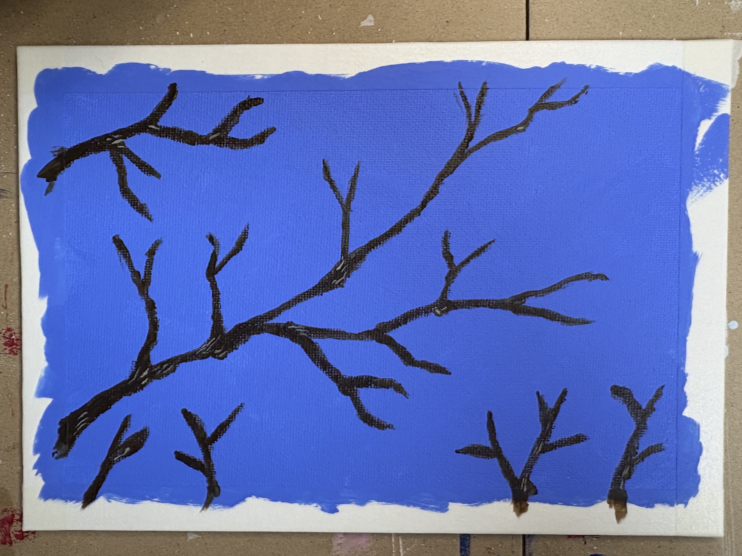 - 筆:背景を塗るための少し太めの平筆と、枝を描くための細筆の2本あれば十分です。筆に関しては、100均のものにはアタリハズレがあるので、そんなに高級なものでなくてもいいのでメーカー品をおススメしています。