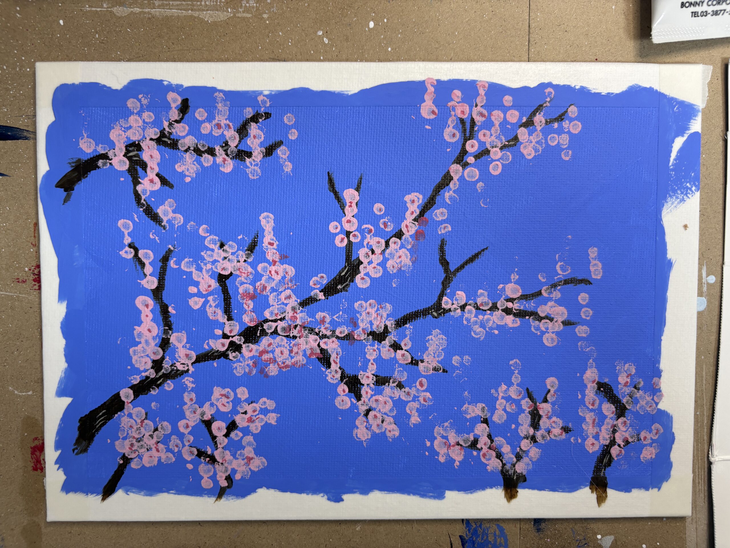 アクリル絵の具の乾きの早さが「桜」の重ね塗りに最適