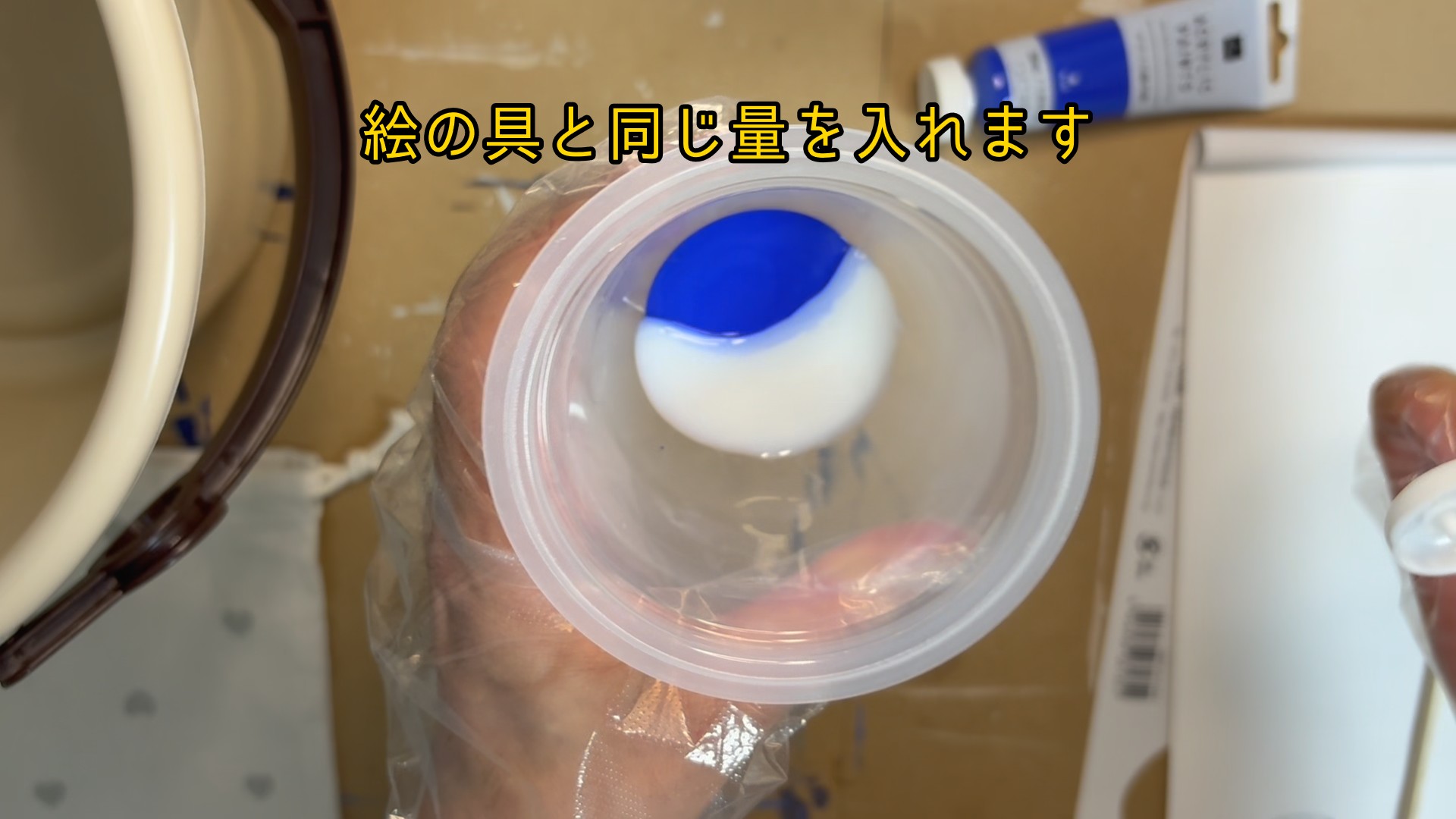 全体染めと同様に、基本の比率である「アクリル絵の具:メディウム = 1:1」で混ぜます。