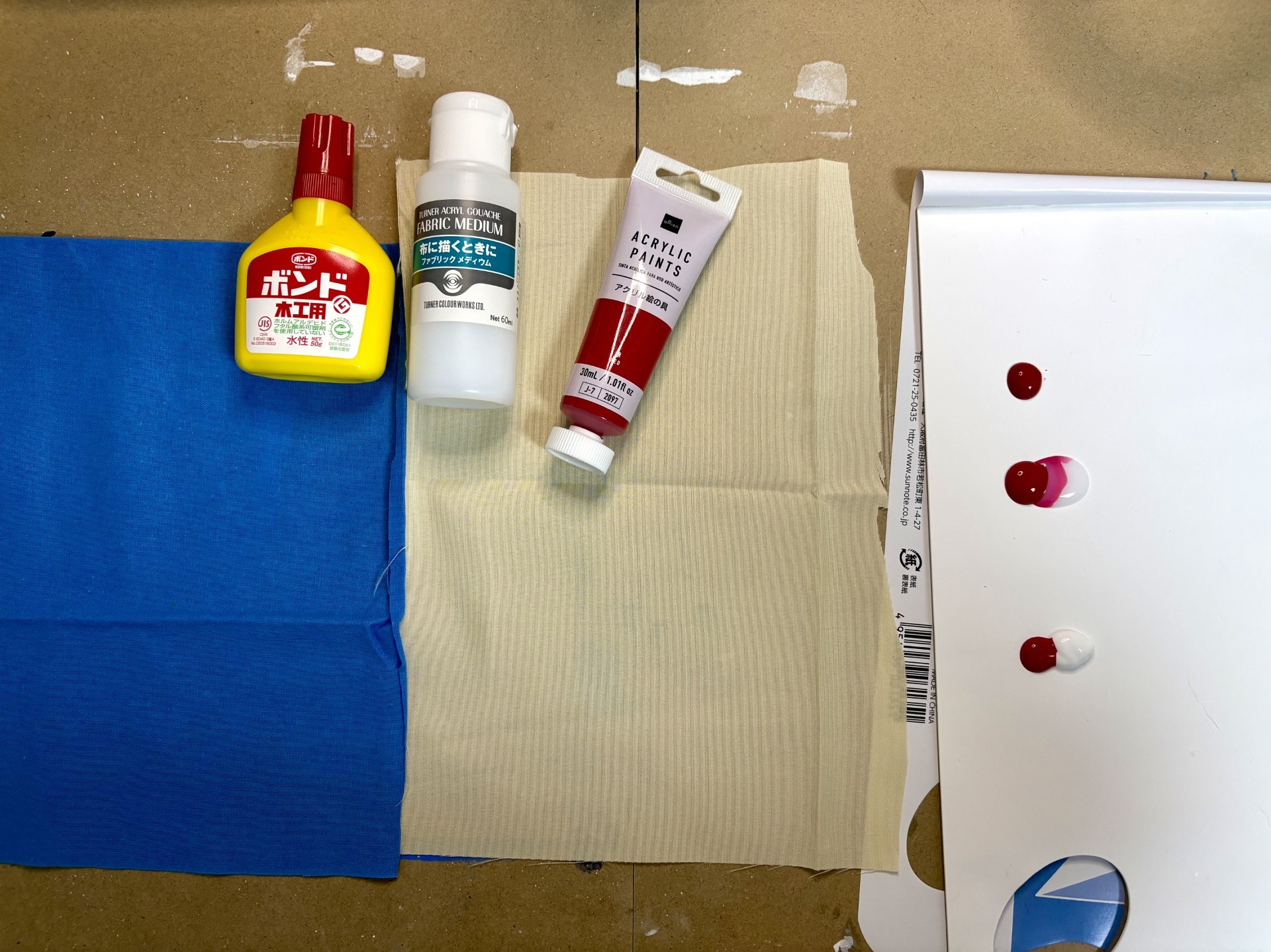 さっそく、アクリル絵の具で布染めをする準備をしていきましょう。