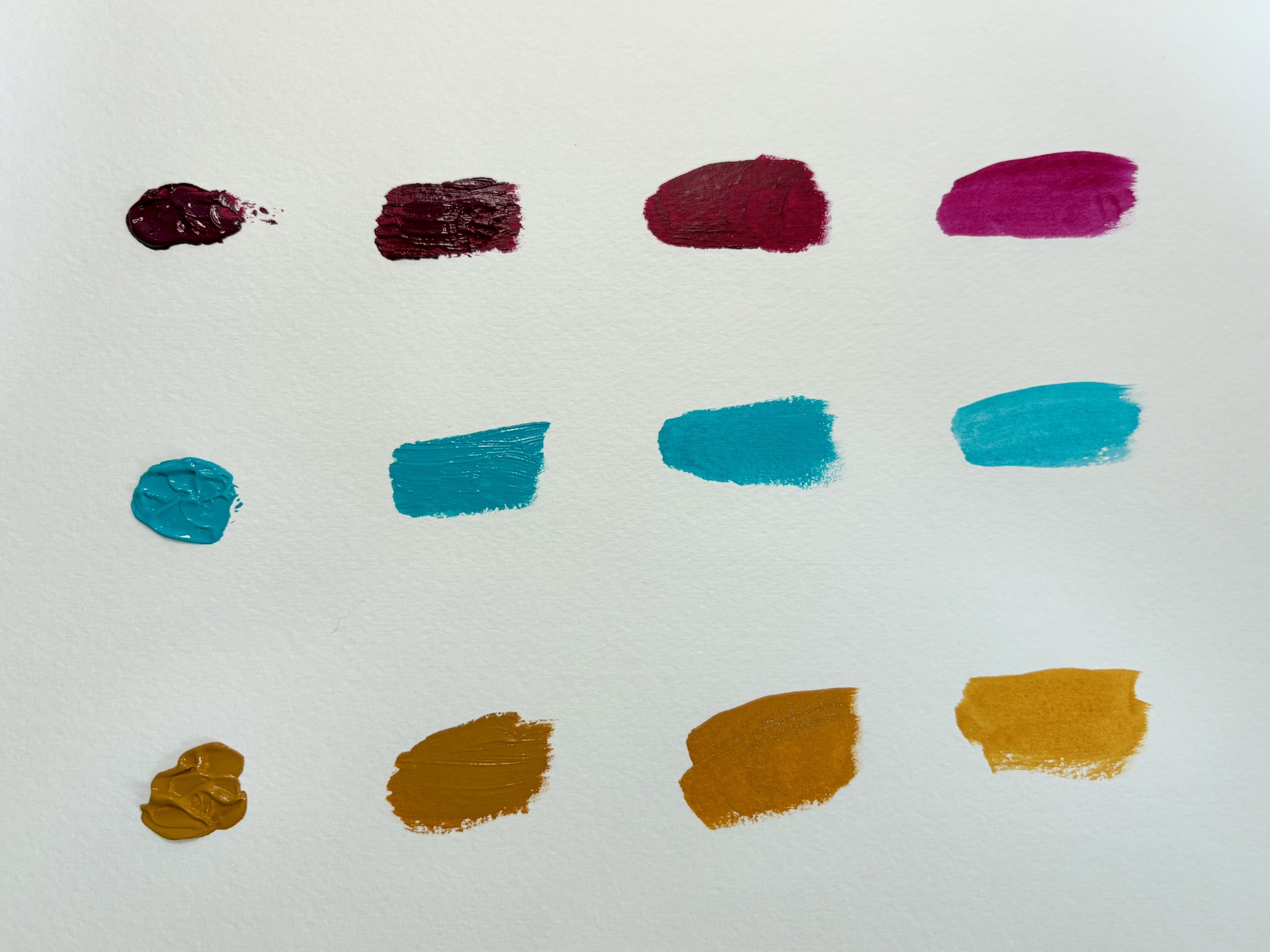 アクリル絵の具は乾くとツヤが出て、上に塗る色がきれいに重なります。