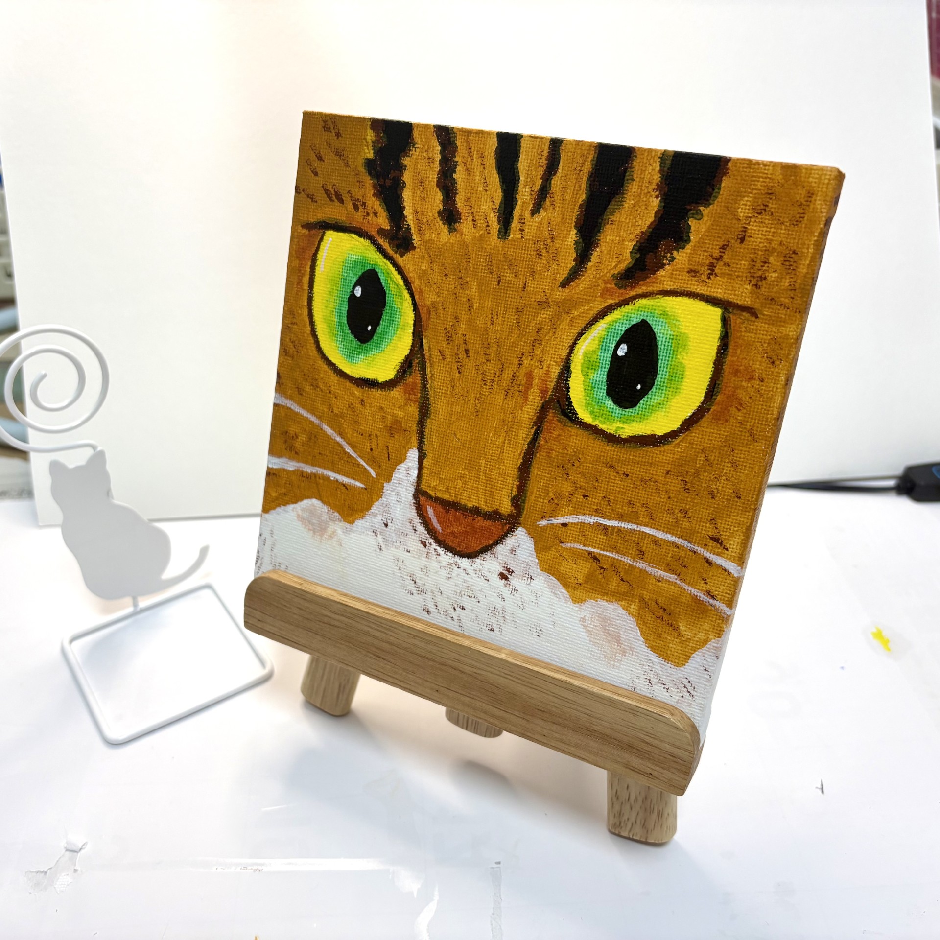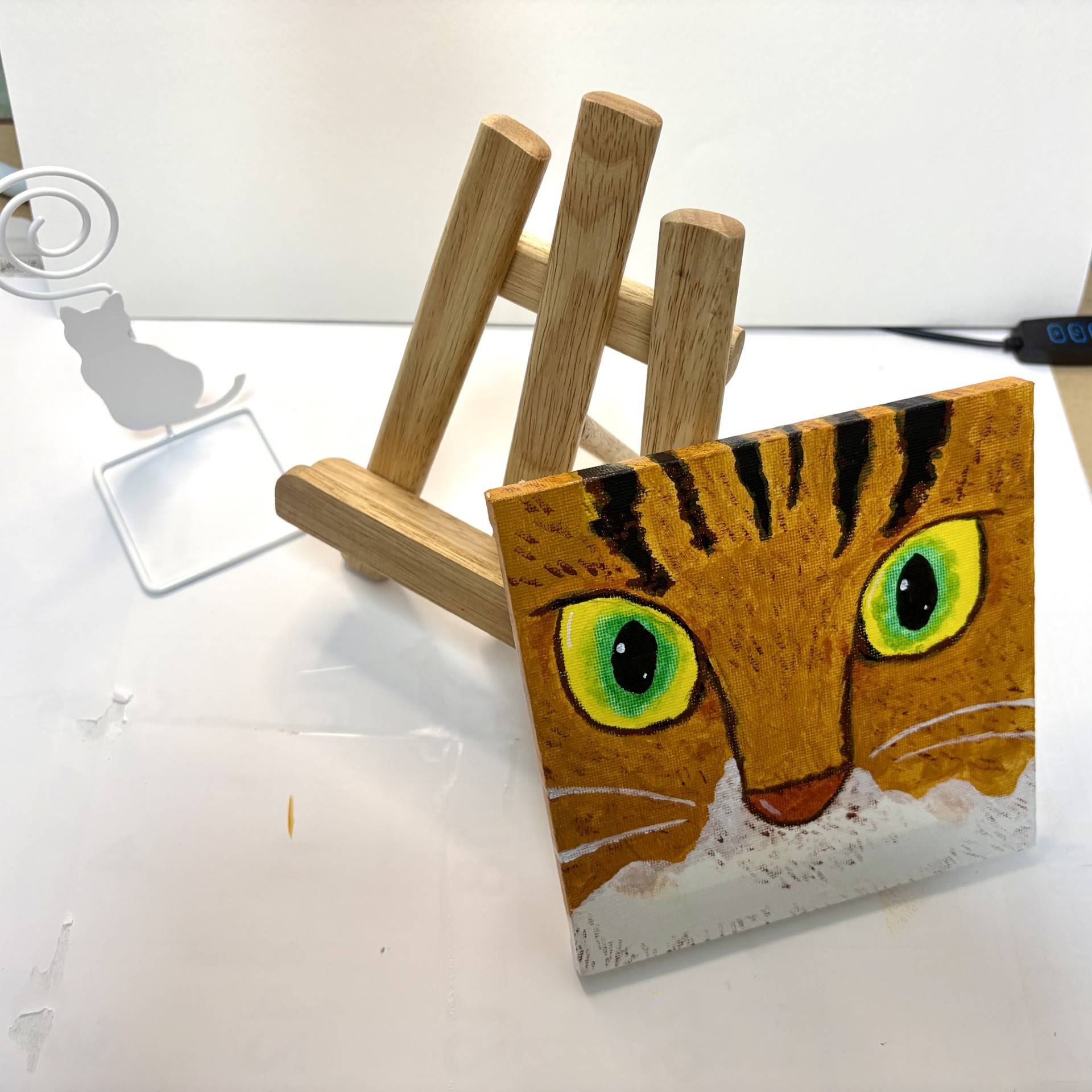 ↑「夜空を飛ぶ猫」(アクリル絵の具を使用)