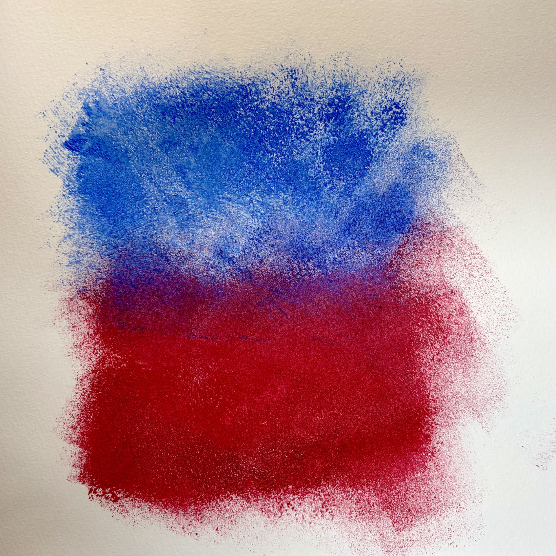 | やり方 | 紙を軽く湿らせて(水スプレーを吹きかけると簡単)絵の具を多めの水で溶いてぽたっと落とす。もしくは水の層にそっと筆をあてるようにして絵の具を落とす。隣の色とも自然に混ざり合い、幻想的な風景のような仕上がりになります。 |