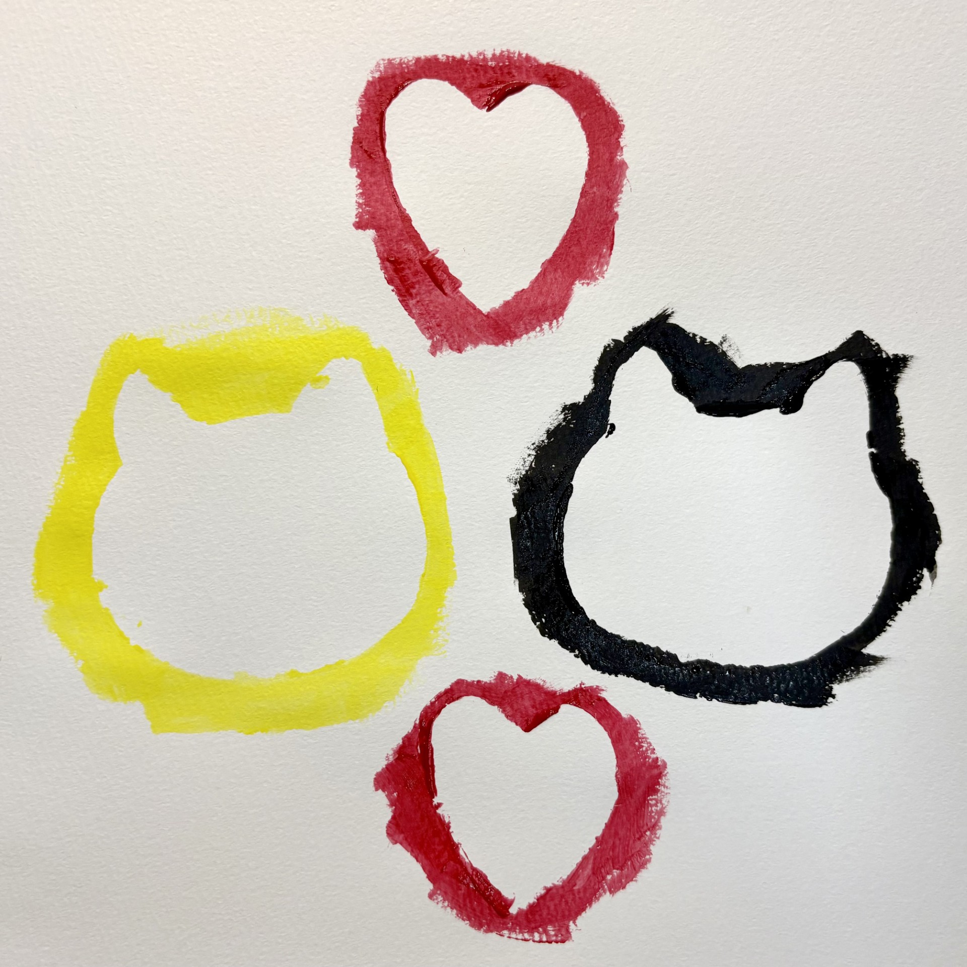 | やり方 | 厚紙で星やハートなどを切り抜いて肩を作り、紙に置きます。上から色を重ねて型をはずすと、くっきりとした形が浮かび上がります。 |