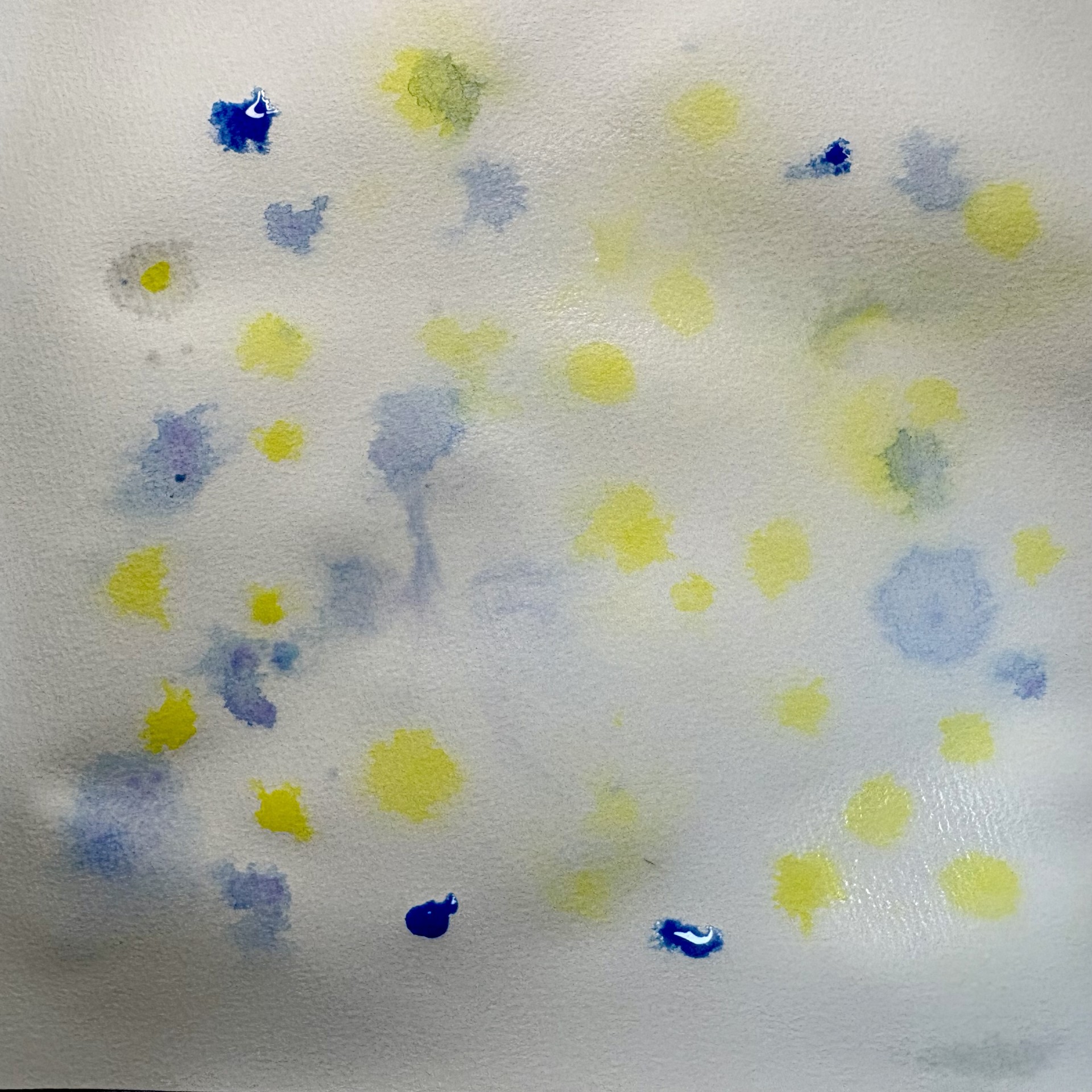 | 感想 | 青と黄色の2色が合わさる雰囲気が好きで選んだのですが、少し緑にもなって一層味わいが深まりました。水の層に広がっていく絵の具の様子が楽しかったです。 |
