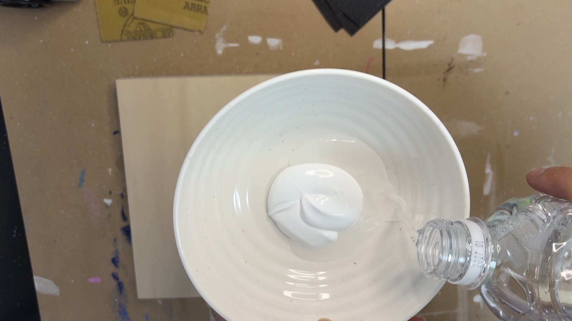 - 小皿などにジェッソを出します。水の量はジェッソの約20〜25%までにします。