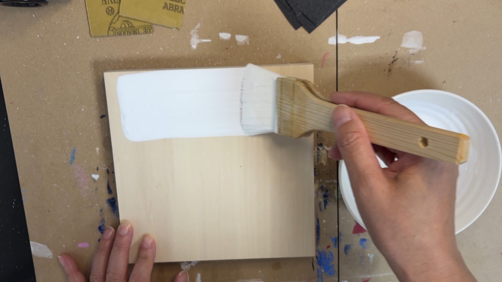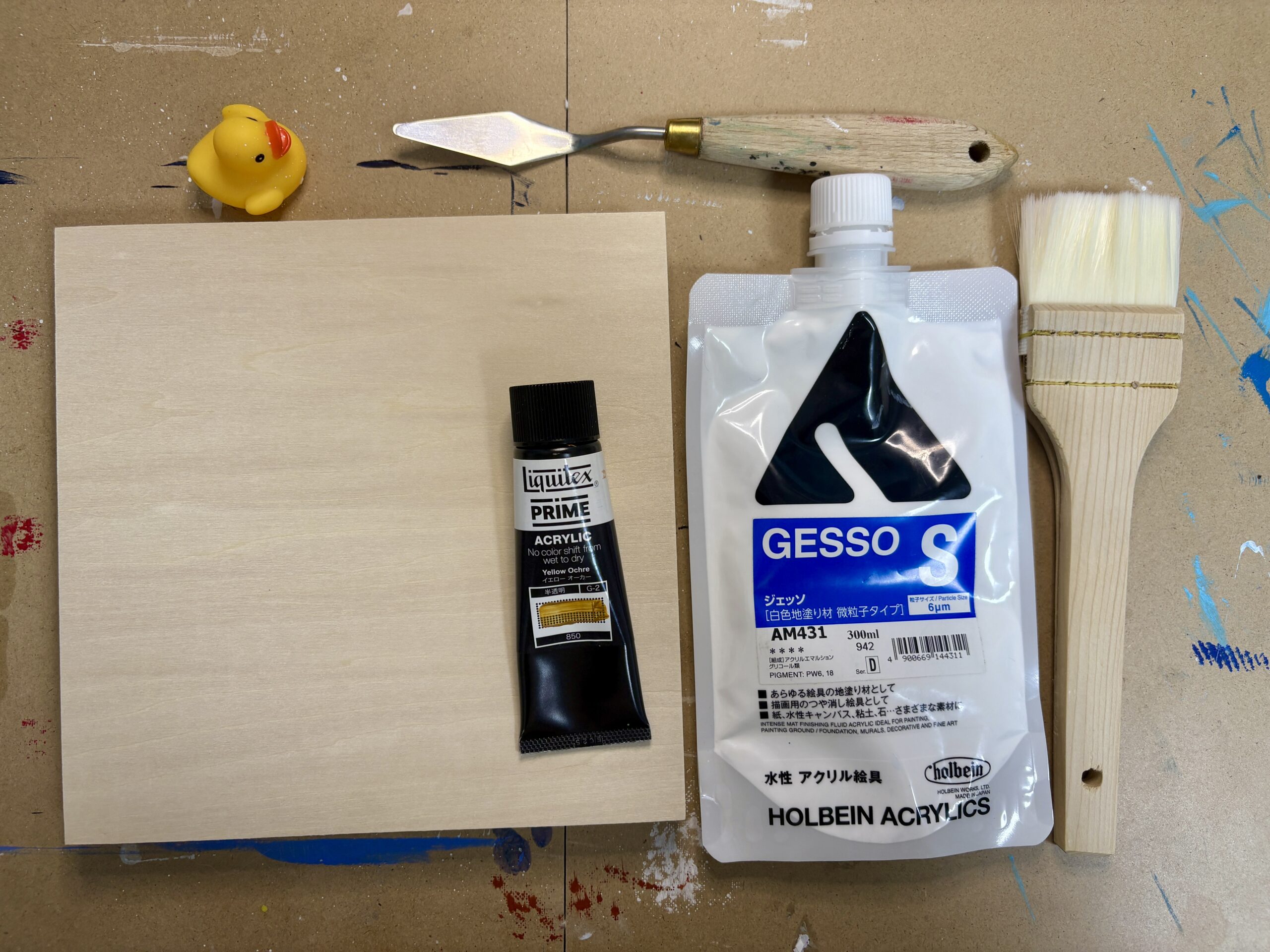 白いペンキなどで代用する方もいますが、絵の具の定着や耐久性を考えると、やはり専用のジェッソをおすすめします。