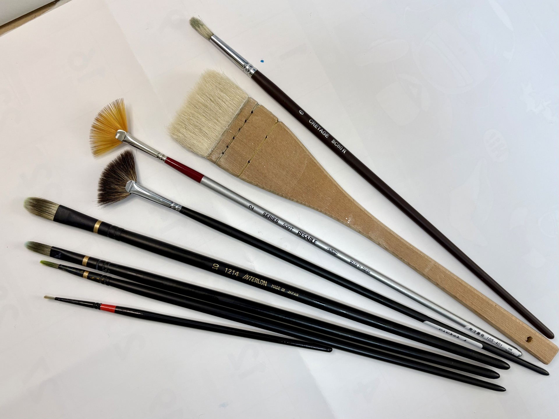 ■↑愛用の筆たちです。グラデーションでは手前のナイロン筆と上から二番目の刷毛を使います。