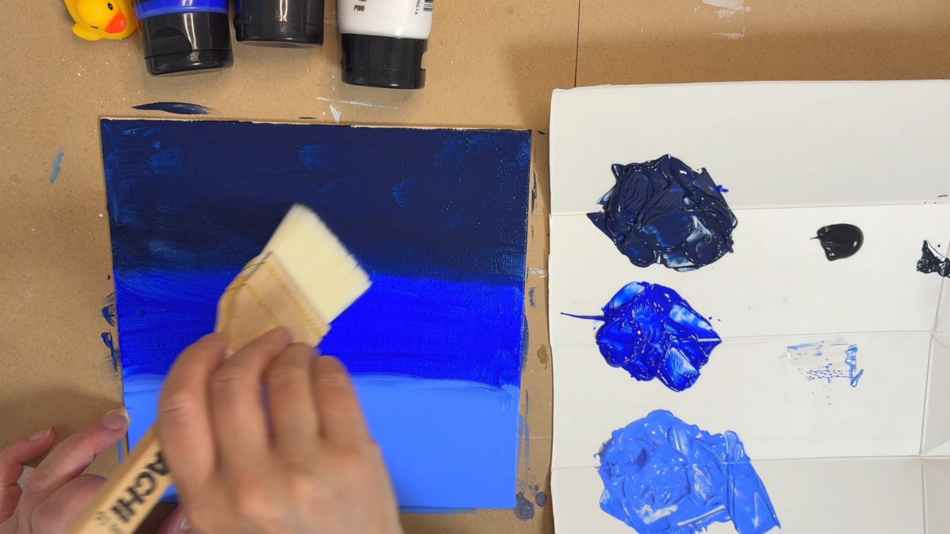 グラデーションを作る時は、パレットの上で「ちょっと明るすぎるかな?」と思うくらいの色を作っておくと、乾いた時にちょうどいい色味になりますよ。
