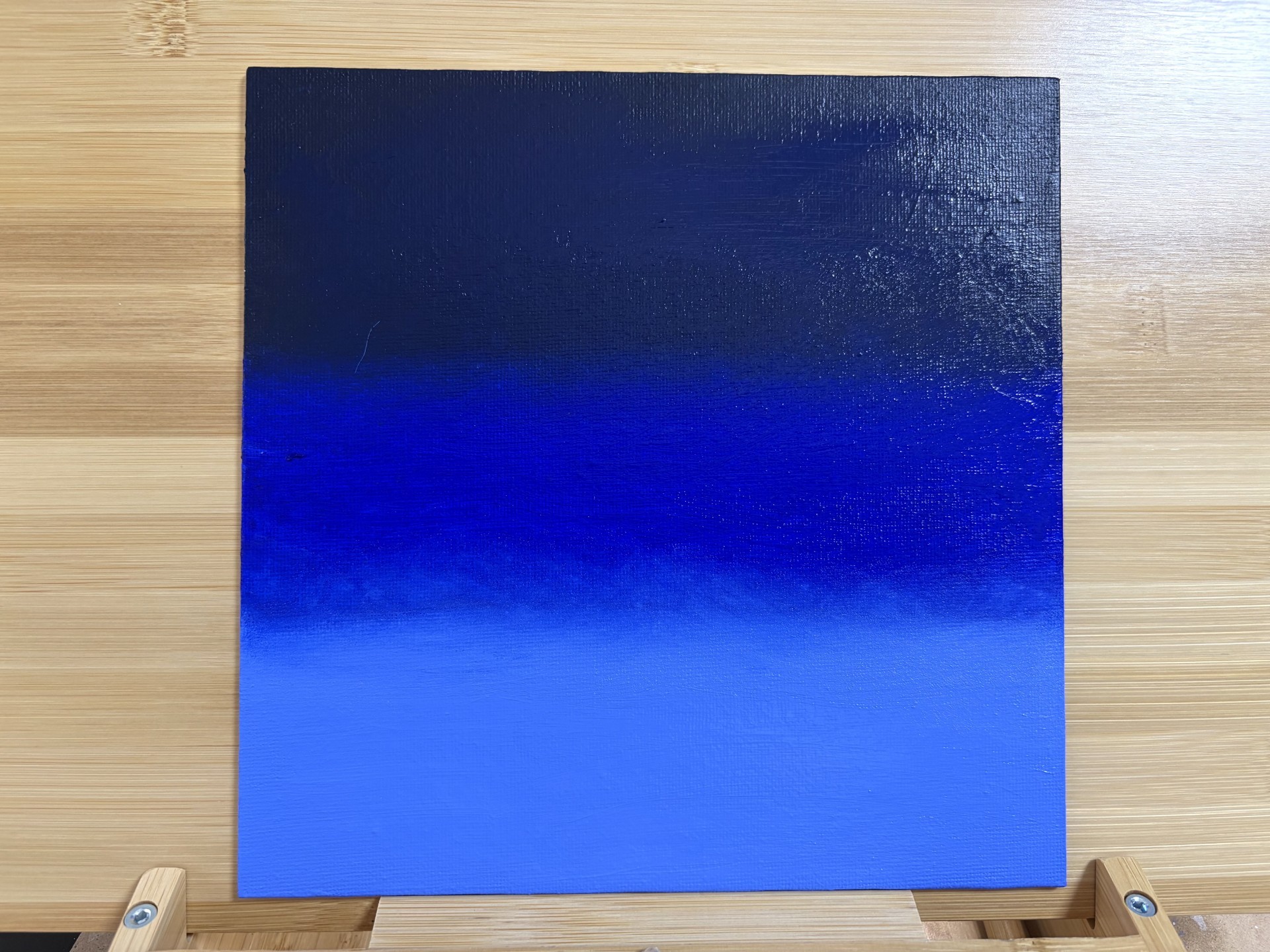 アクリル絵の具は乾き始めると粘りが出ます。この時に筆で触ると、せっかくのグラデーションがボロボロと剥がれてしまうので、ぐっと我慢しましょう。