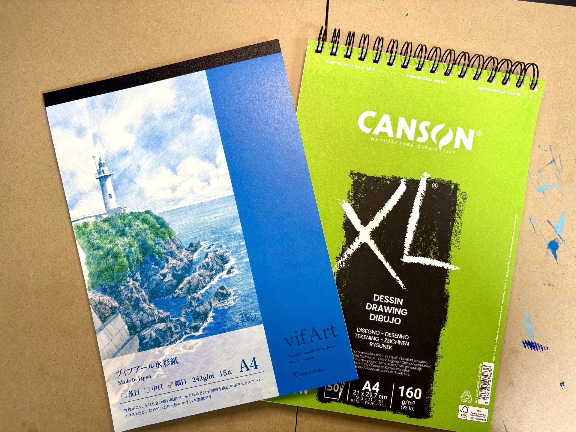 ■↑今回、使用したのは「マルマンvif Art 水彩紙 A4細目」です。