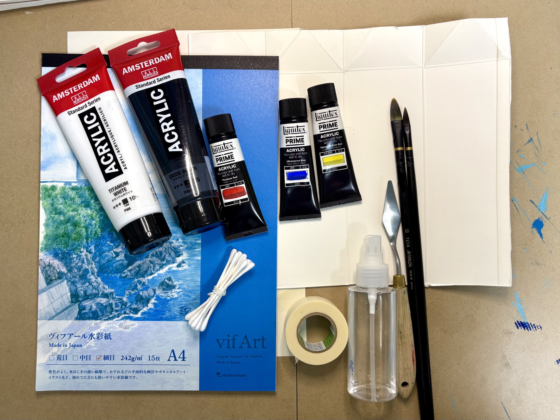 さらに、アクリル絵の具についての知識や、道具についても紹介しました。