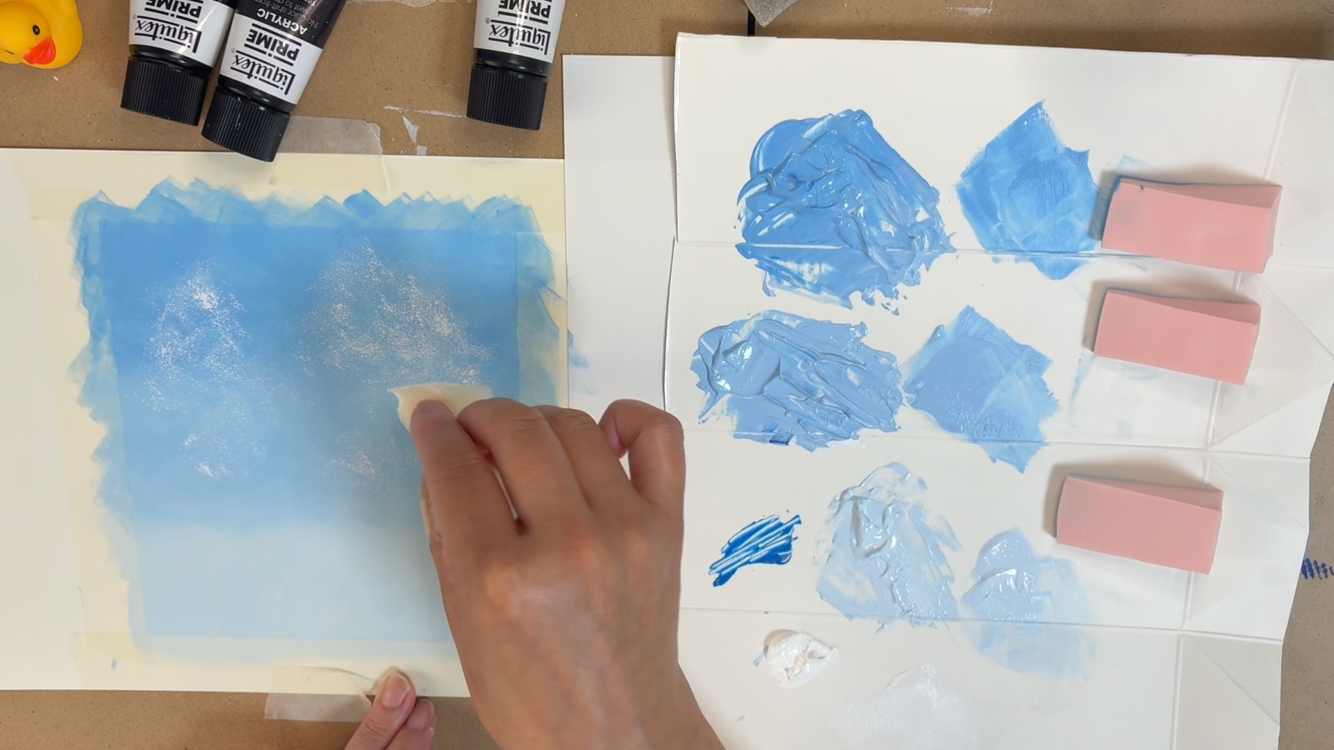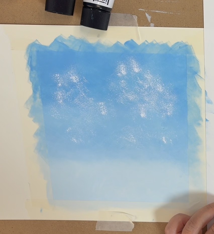 ステップ2:ポンポン叩くだけ!スポンジで「雲」を描く