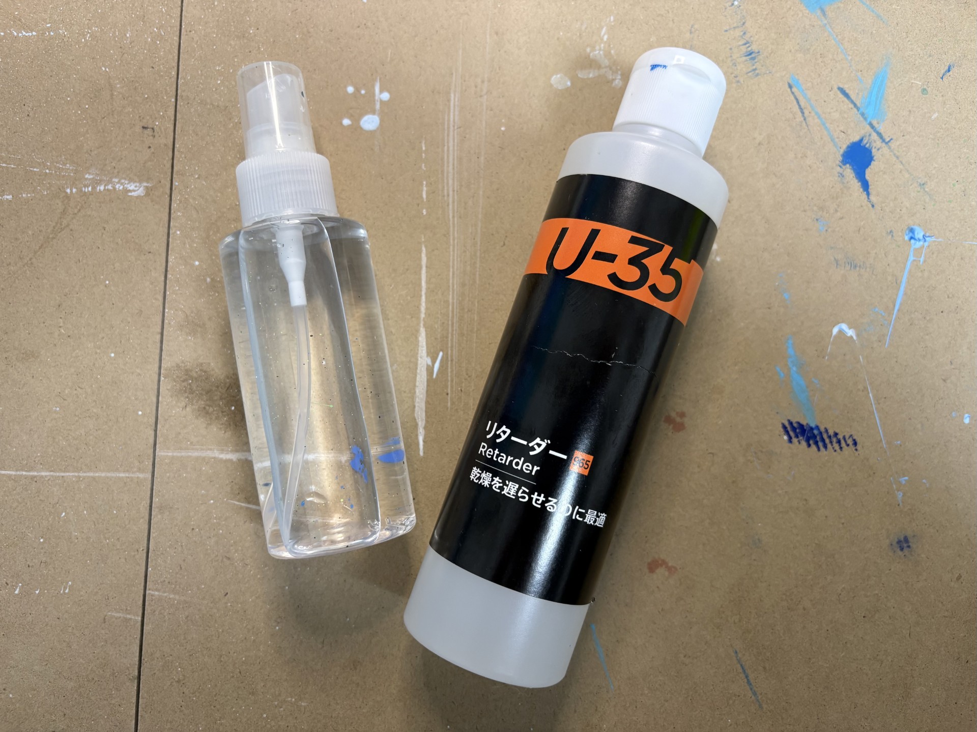 右側:リターダー:アクリル絵の具に混ぜておくと、絵の具が乾くのを遅らせることが出来ます。
