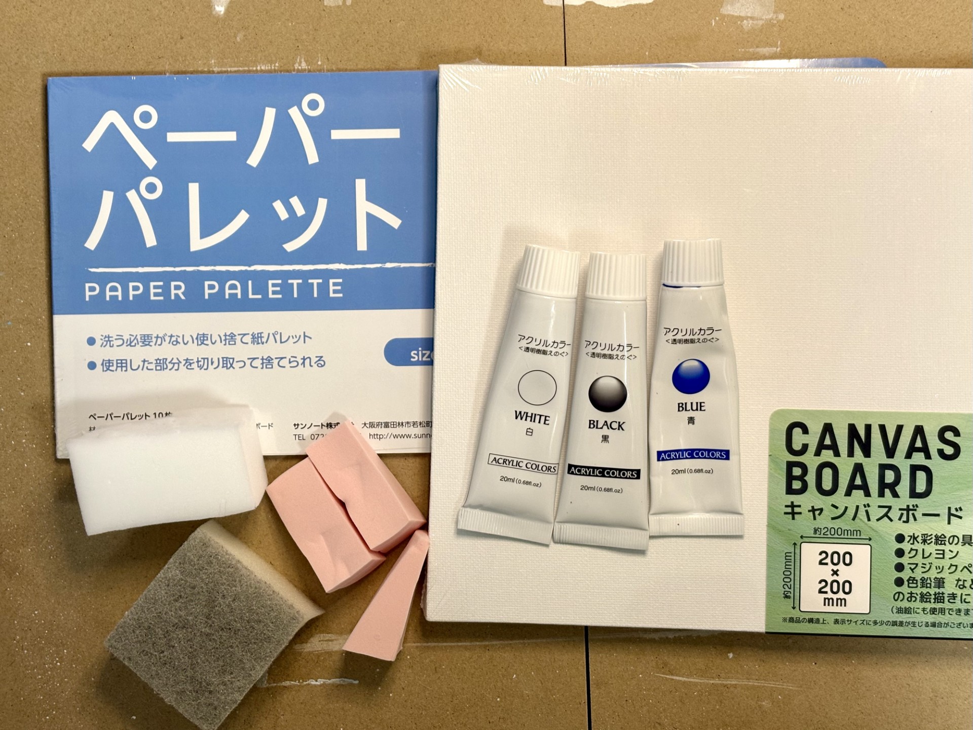 - キャンバス: 100円ショップで売っている小さめのキャンバスボードが練習用に最適です。