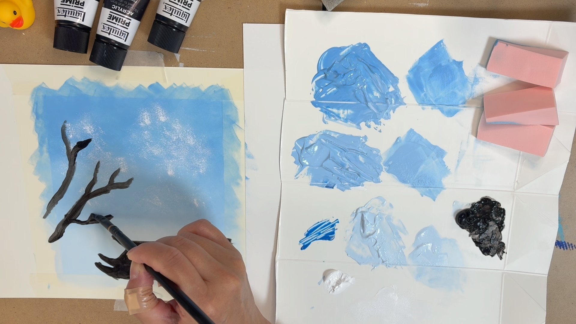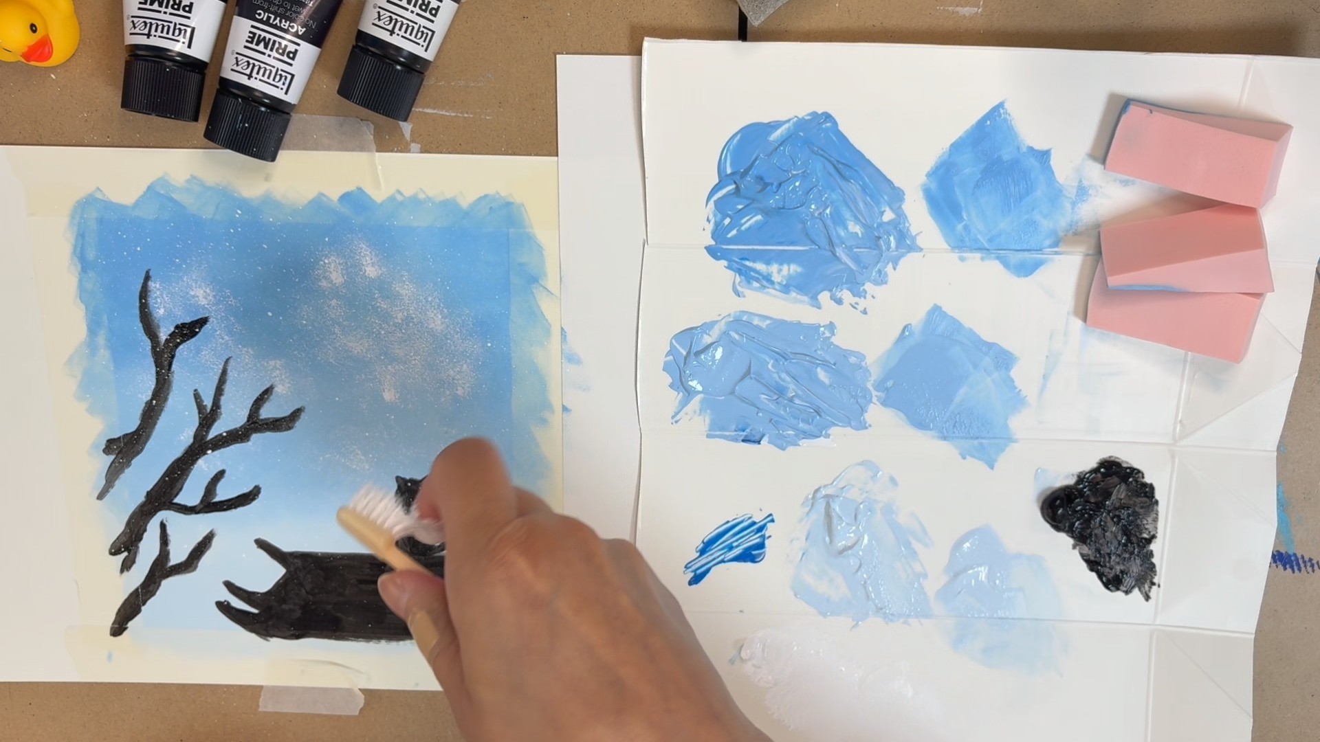 アクリル絵の具:3色(青・白・黒)があればOK!