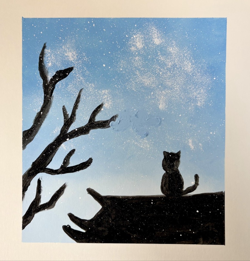 ただの風景画に、小さな「猫」や「人物」のシルエットを加えるだけで、絵に物語が生まれます。
