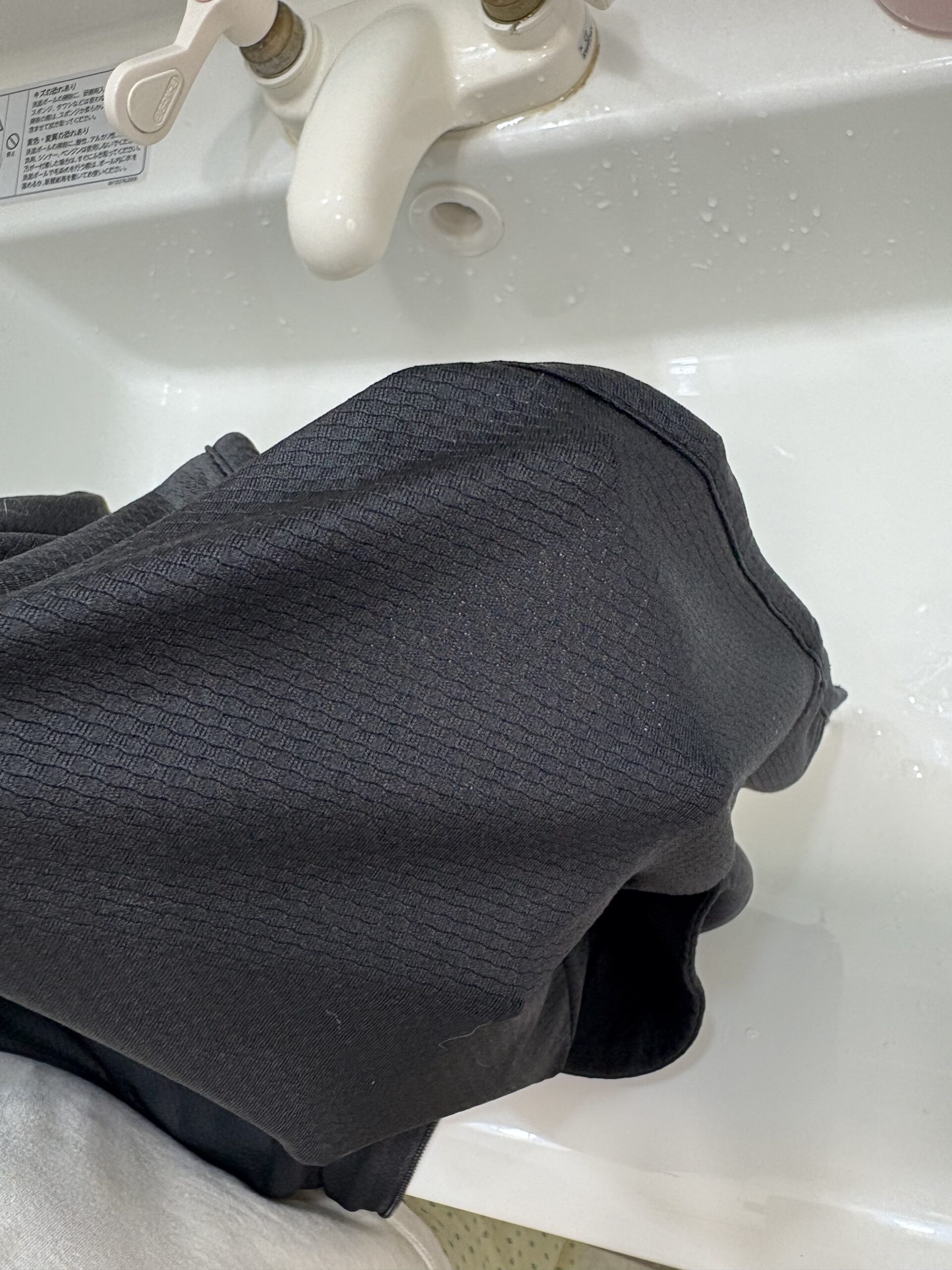 色がほぼ消えたら、中性洗剤を直接つけてもみ洗いし、ぬるま湯で流します。これで残った「油分と微細な顔料」を完全に除去できます。