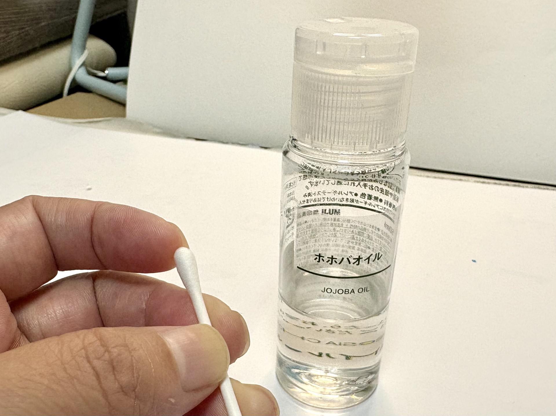 ■↑爪の間は綿棒にオイルをつけてこすってみると結構とれます。無印良品のホホバオイルは保湿にも使えておススメです。