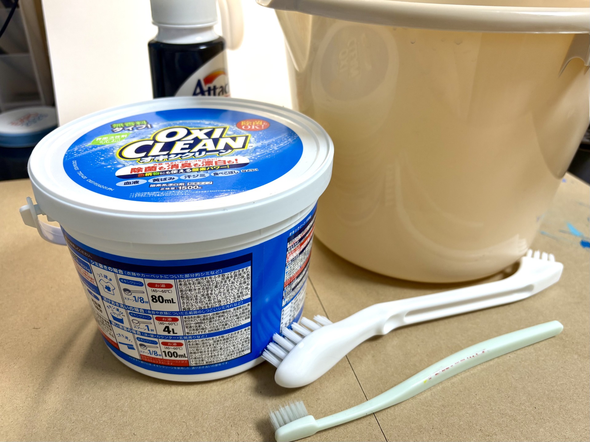 - 酸素系漂白剤 :オキシクリーン(粉末タイプ推奨)または同等の粉末酸素系漂白剤