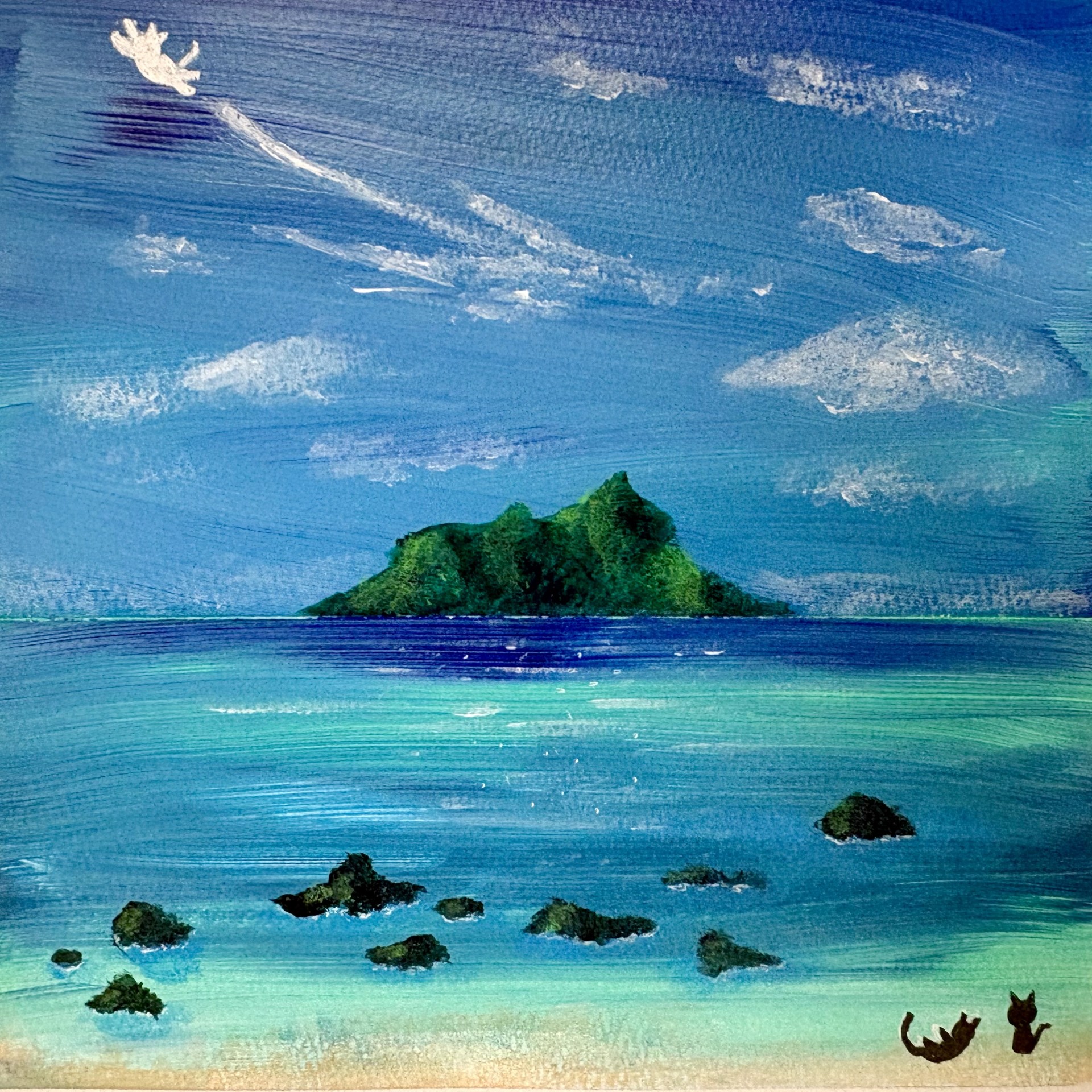 ↑『海の小島とシーニャンズ』(アクリル絵の具)