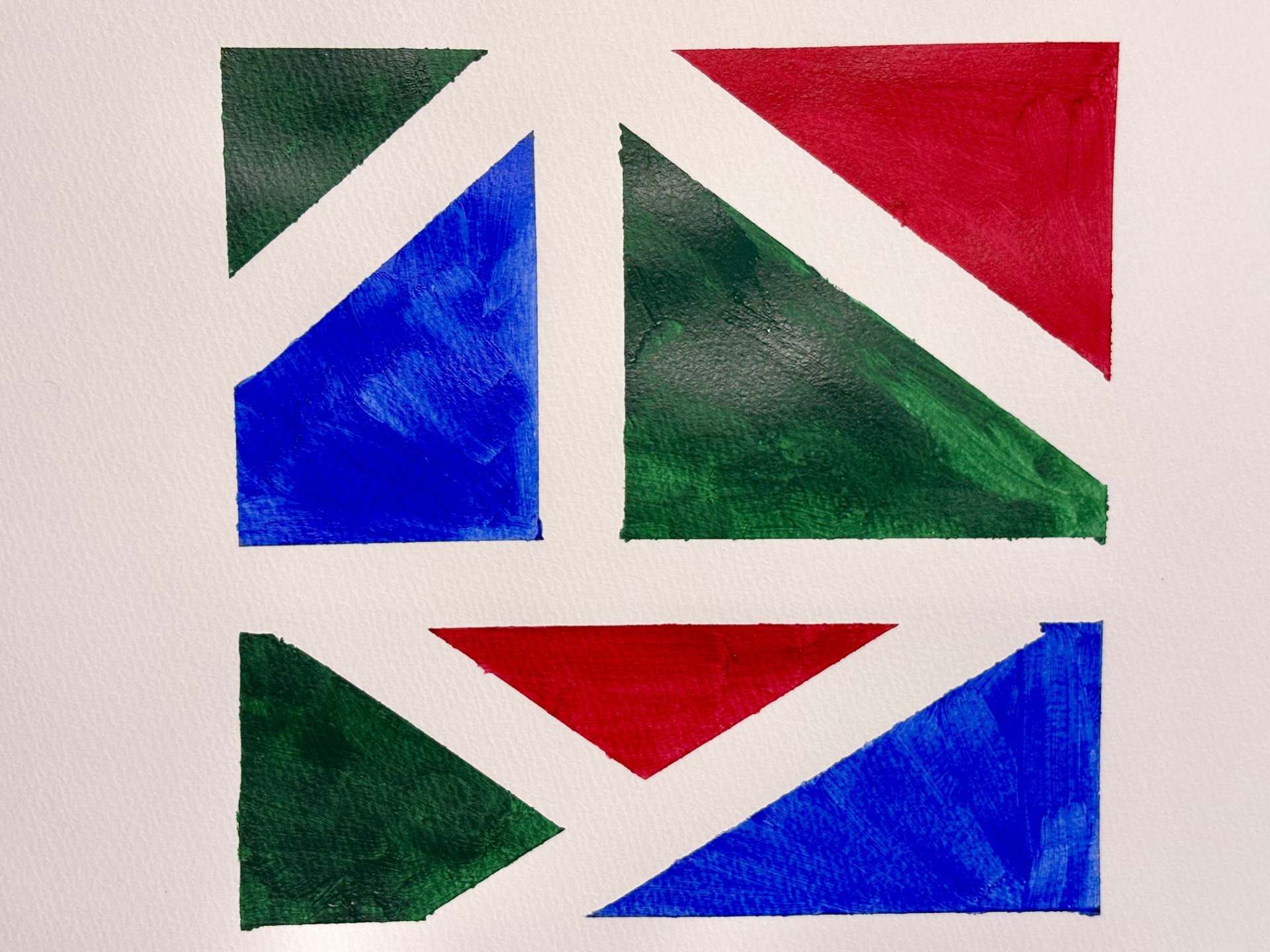 最初の塗りでムラが出ても気にせず、完全に乾かしきってから、同じ色の絵の具を薄く重ねていきます。