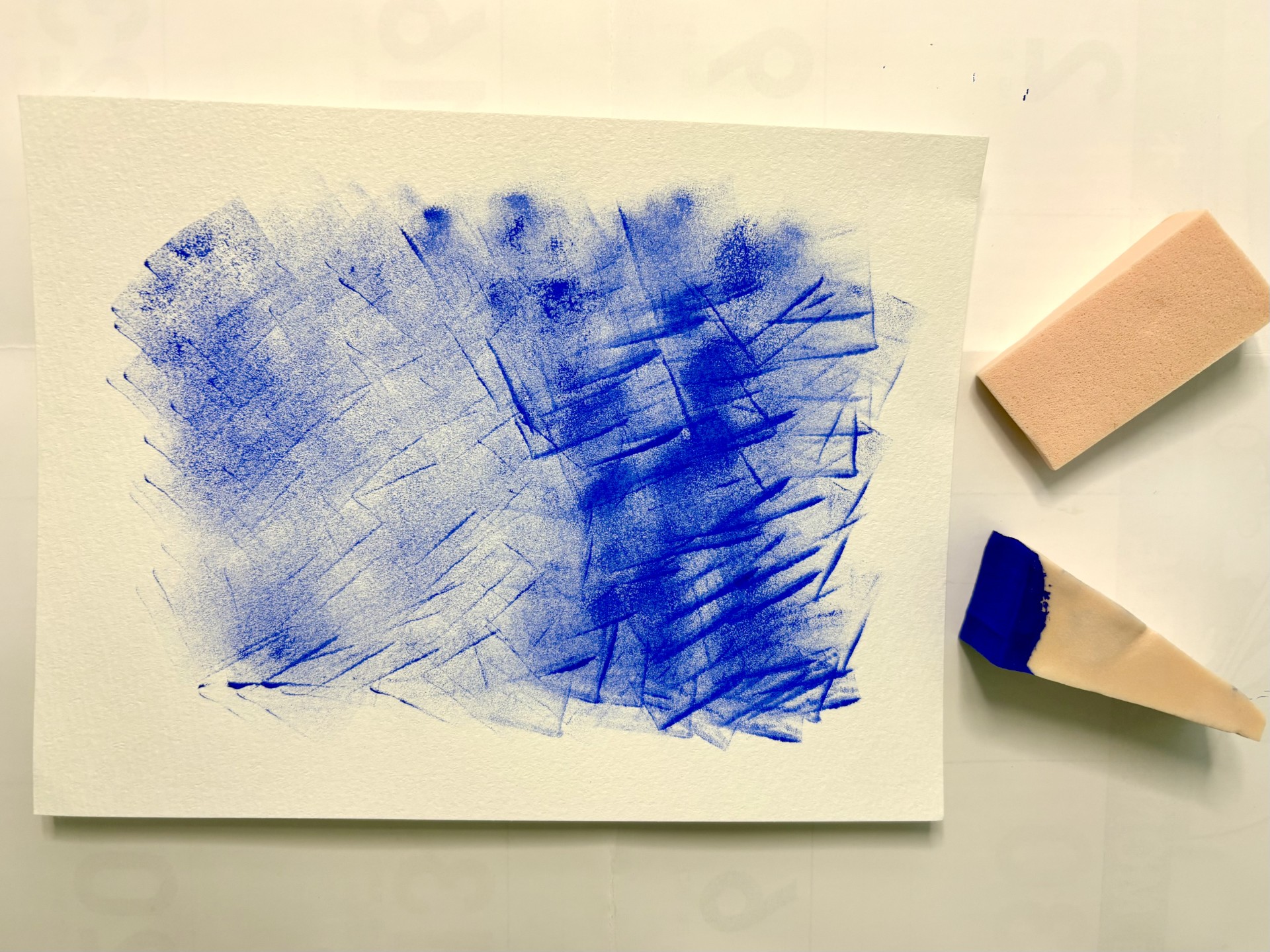 - 食器用スポンジ: ソフト面とハード面を使い分けてテクスチャーの違いを出せる。強弱の違いや水分量で変化を出せます。初心者さんにも手が出しやすいと思います。