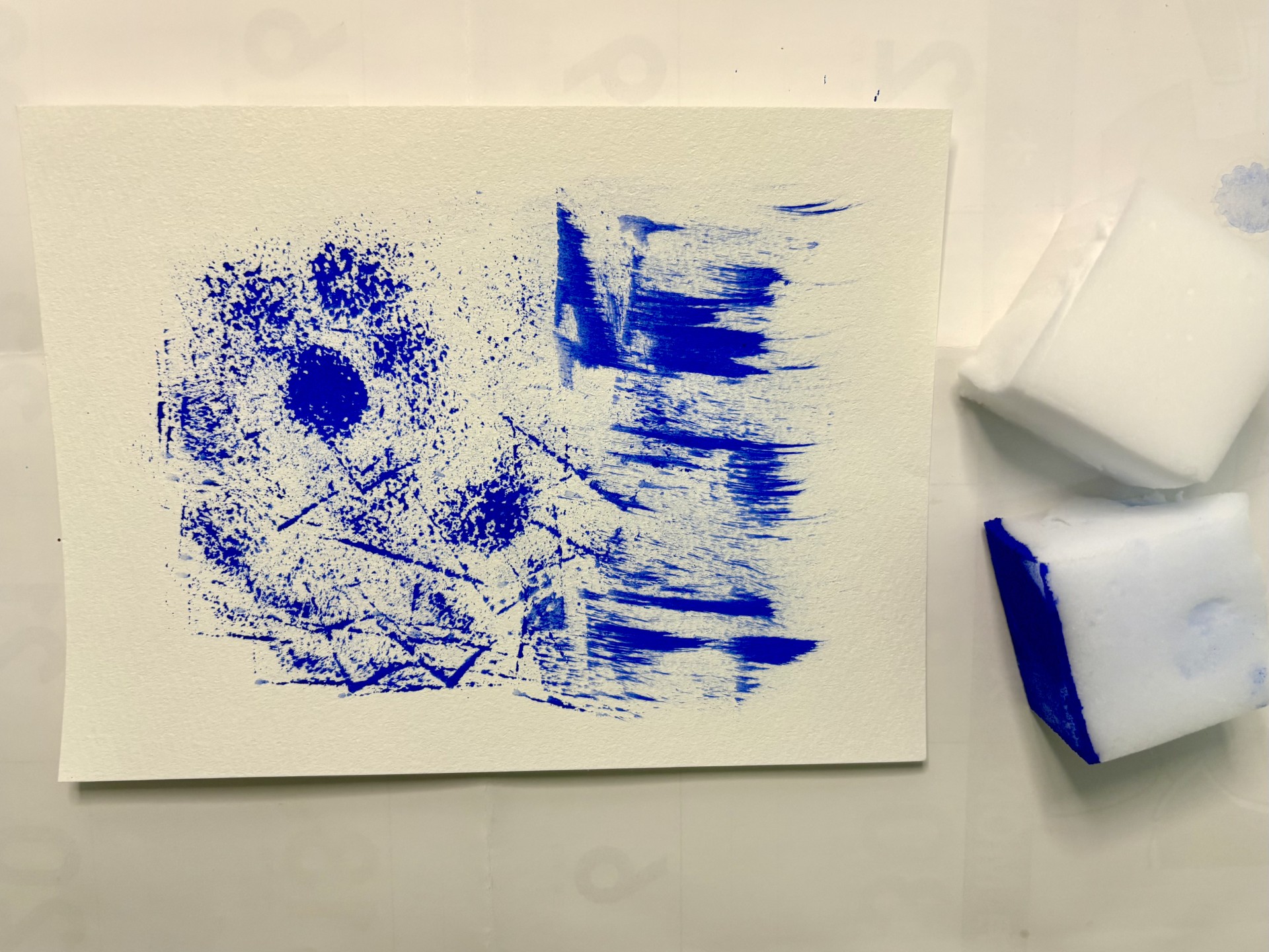 ■↓食器用スポンジにアクリル絵の具をつけて叩いてみました。