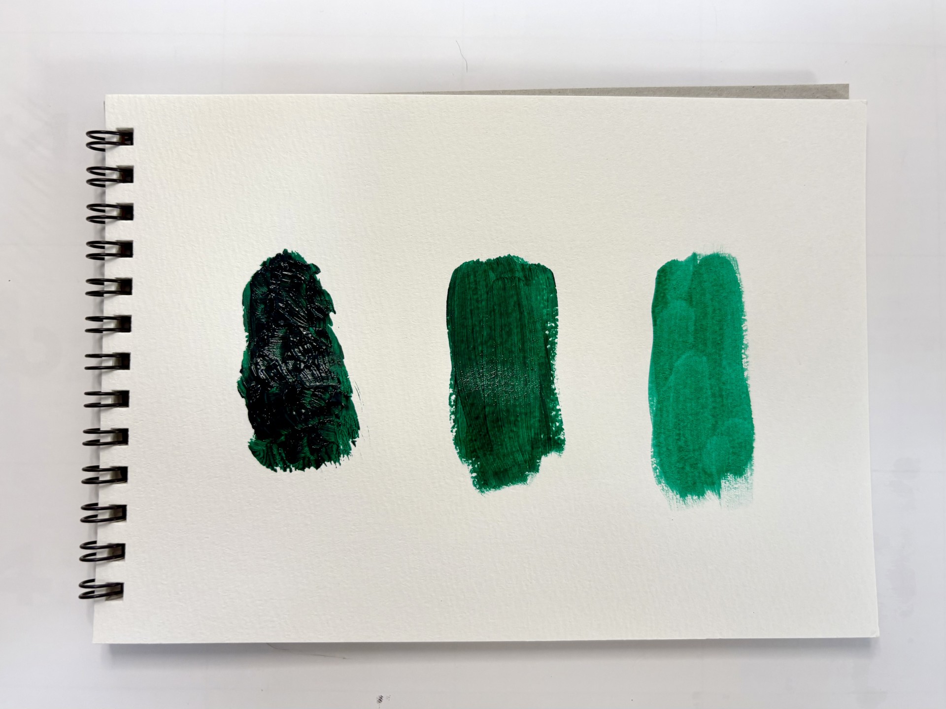 アクリル絵の具は、水を多く混ぜるほど発色の変化が大きくなります。