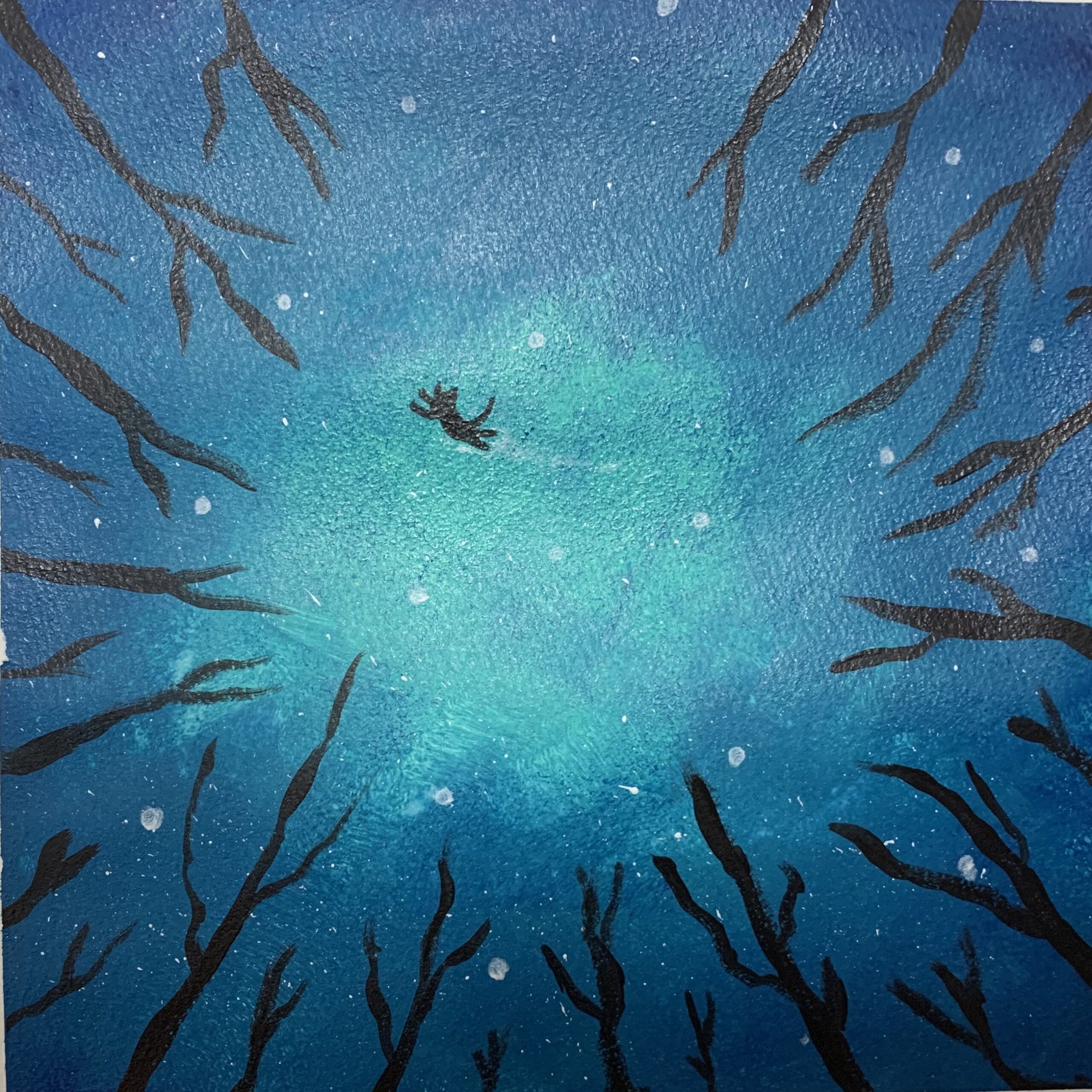 ■↑『夜空を飛ぶ猫』(アクリル絵の具)こちらは白、黒と、確か青系を2本くらいで描きました。