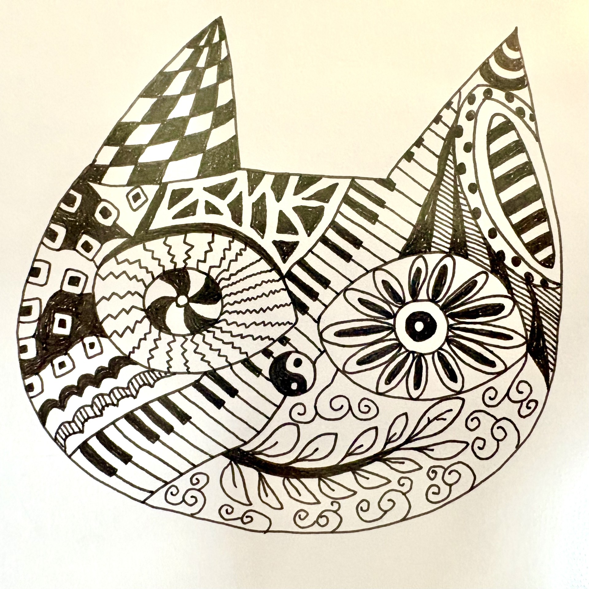 - 試すコツ: 猫の体の中に、あえて花柄や水玉模様を描き込んでみてください。