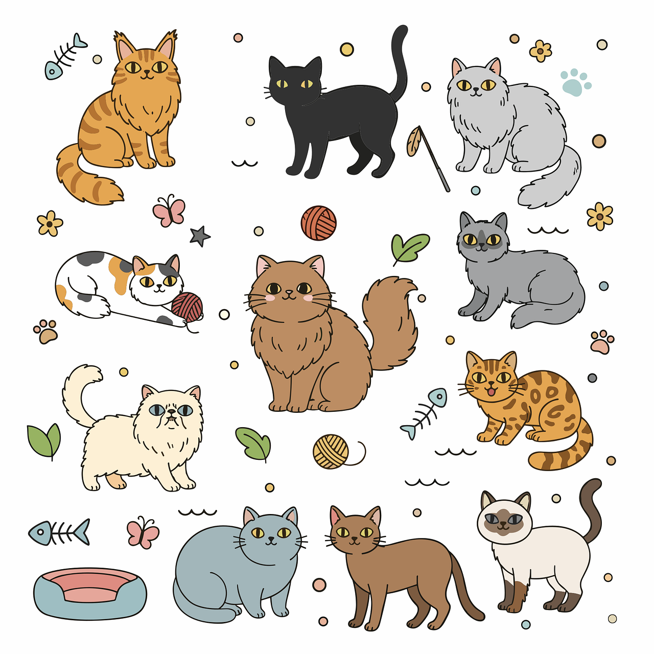 猫を描くことに少し慣れてきたら、いろいろなタッチのかわいい猫に挑戦してみましょう。