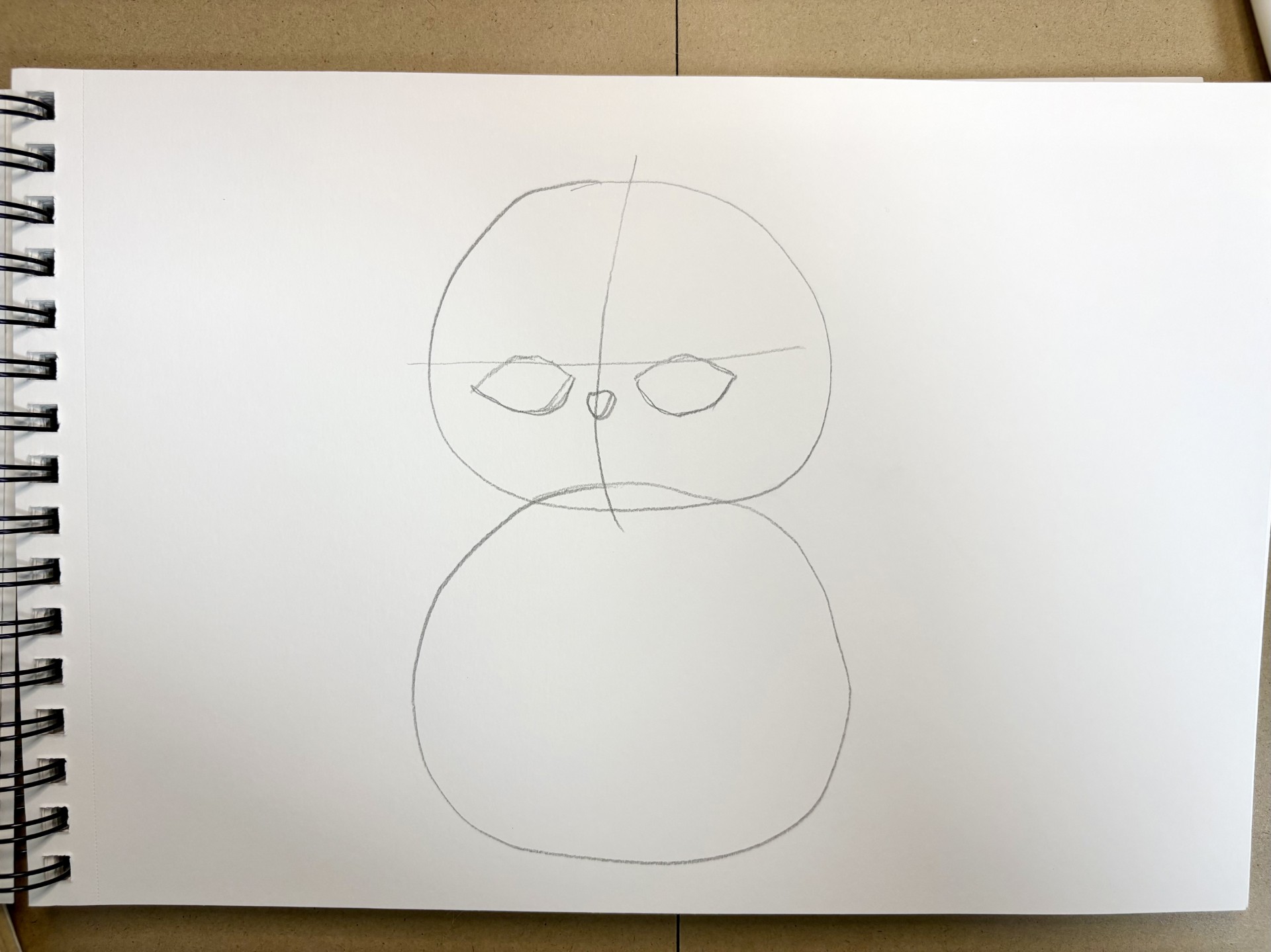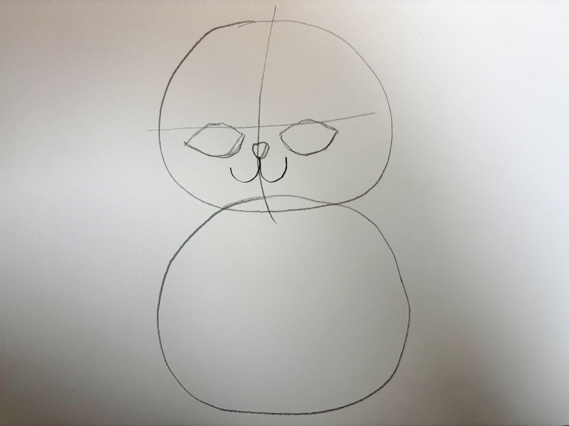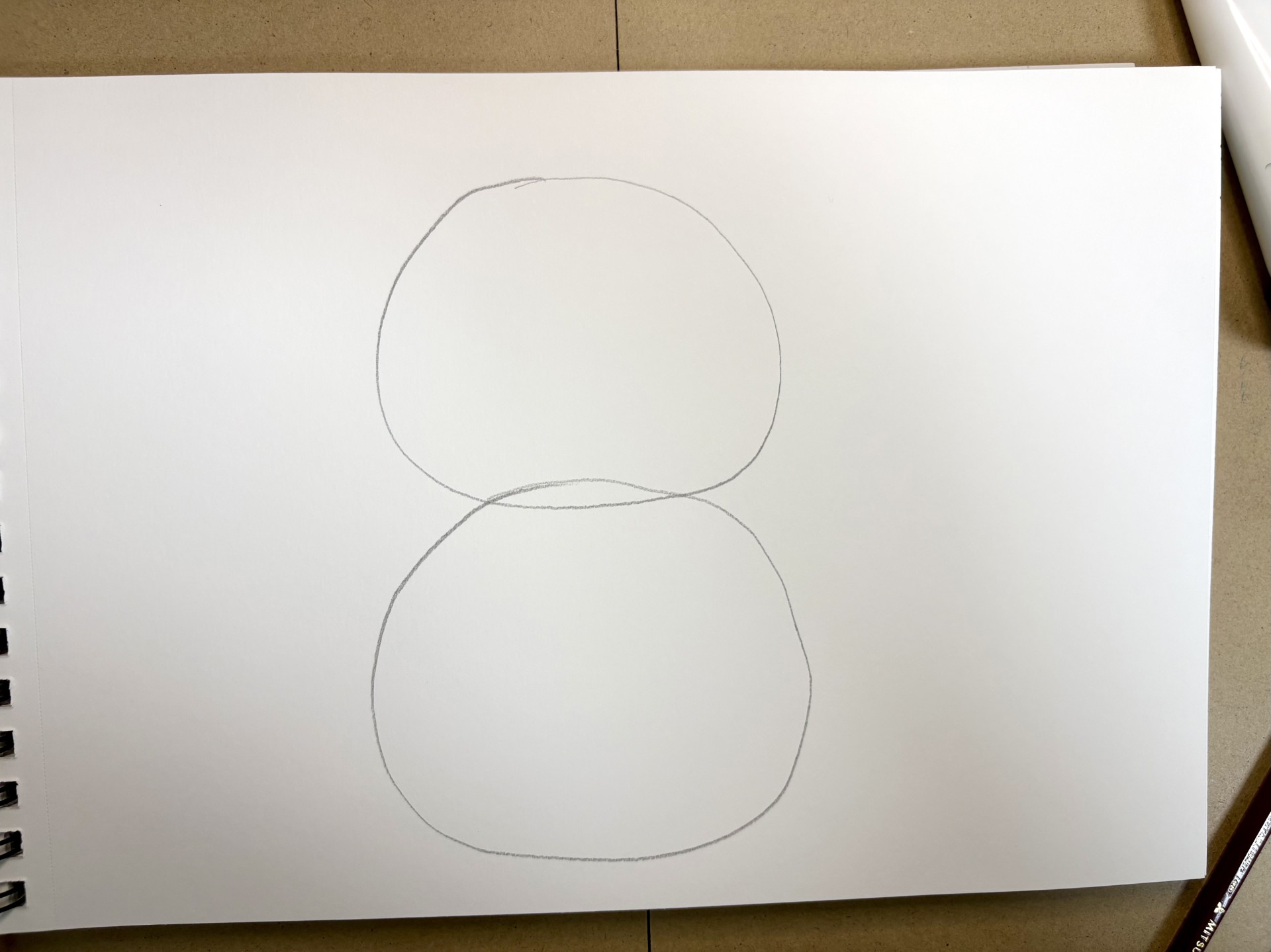 まず、同じ大きさの丸を上下に2つ、雪だるまのように重ねて描いてみてください。上の丸が「頭」、下の丸が「体」です。これだけで、もう可愛いです。 - ポイント: