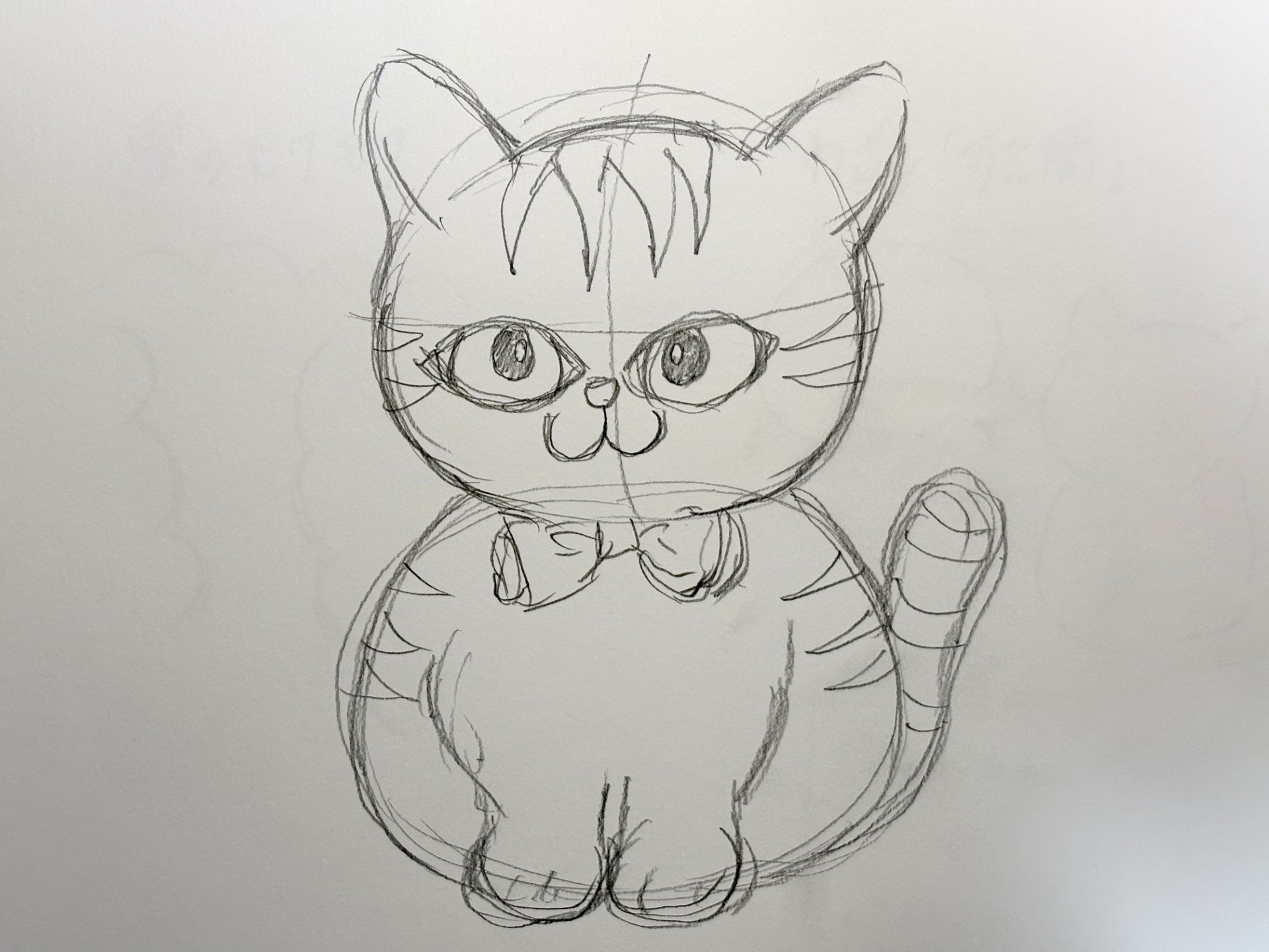 「猫」を描こうとするのではなく、 「柔らかいマシュマロや大福」 を描くつもりで線を引いてみてください。
