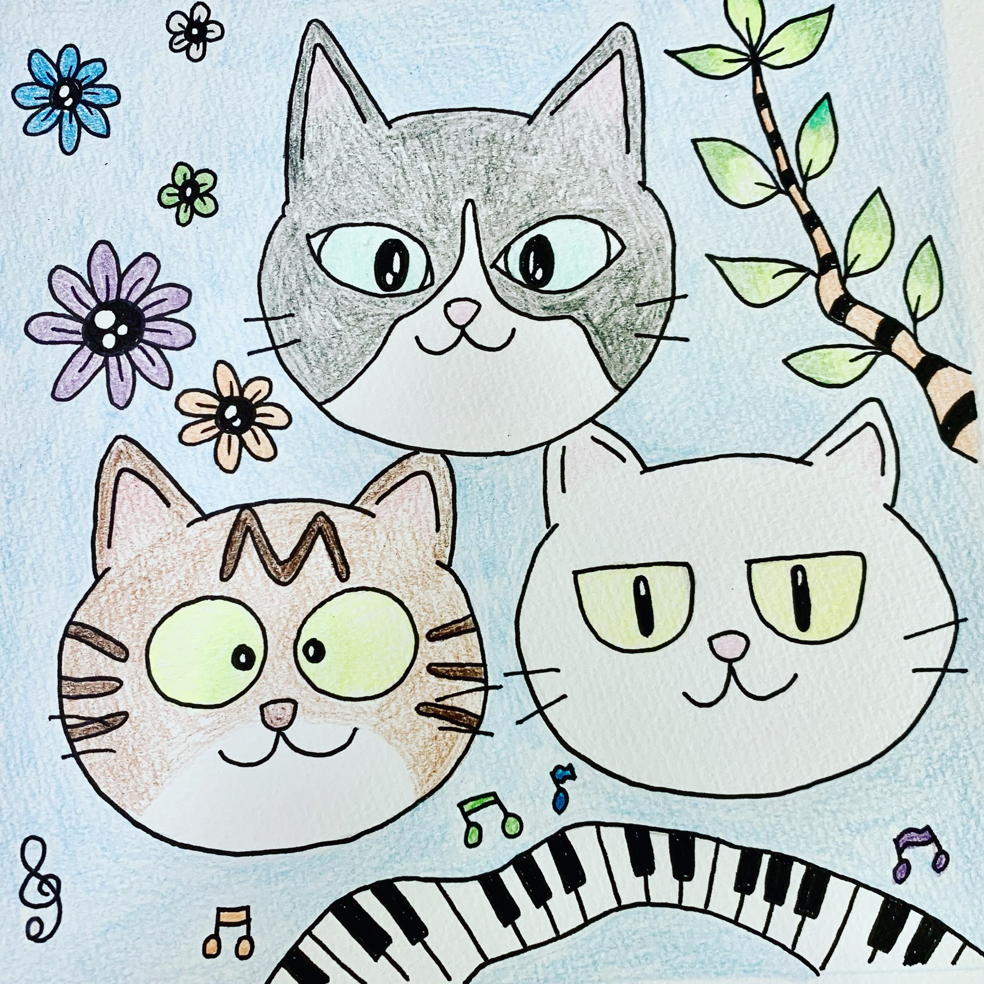 なかなかこの3にゃんが顔をそろえてくれることもなかったので(クッキーとシエルがケンカを始めるのです~)この構図がかなえられるのは、イラストの醍醐味ですね!